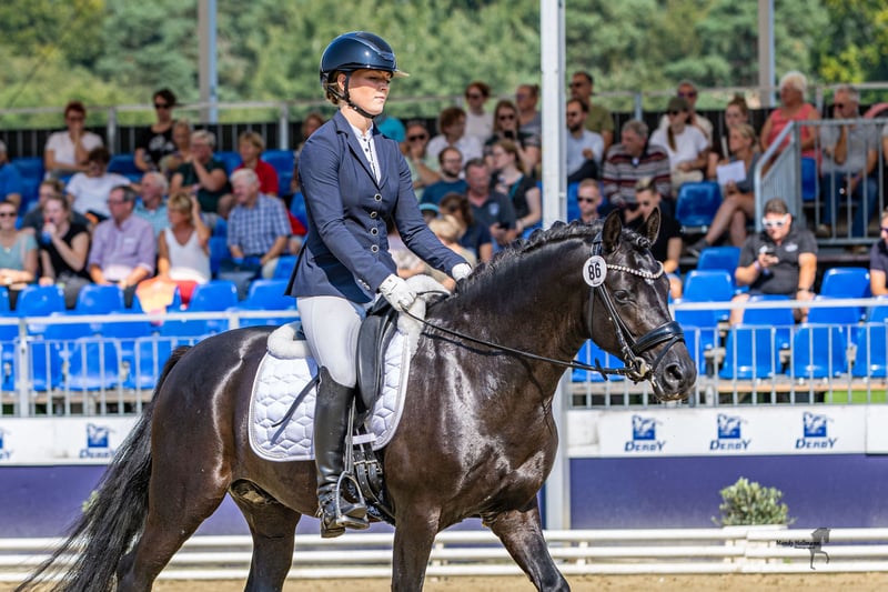 Dieser wunderschöne Ponyhengst bringt alles für einen Sportler mit. Grundqualität, Rittigkeit und Talent für Lektionen. Während dem diesjährigen Deckeinsatz März-Juli genoss dieser Hengst seine Zeit auf der Weide und wurde nur 2x die Woche gearbeitet. Trotzdem zeigte er sich jederzeit kopfklar und sachlich, so dass er sogar von Kindern geritten wurde. Auf Turnier hat er mittlerweile genügend Nervenstärke und kann in den Prüfungen sehr brav und sicher die geforderten Lektionen abrufen. Er bringt genügend Go und Leichtrittigkeit mit, so dass hier ein fantastisches Kinderpony für den FEI Sport reift. Der Hengst wurde bei uns schonend angeritten und ihm wurde Zeit gelassen, damit er lange ein gesundes Leben haben kann. Mit minimalen Aufwand und altersgerechtem Training konnte er sich bereits mehrfach in Reitpferdeprfg. und Drpf. A gegen Großpferde platzieren. Wir wünschen uns ein förderndes und wertschätzendes Zuhause für ihn!