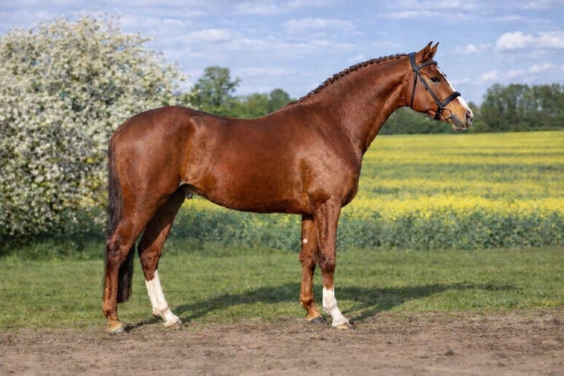German Riding Pony stallion for sale – Perfect for dressage and jumping We are offering a stunning, approved chestnut Riding Pony stallion born in 2022. Standing at 147 cm, he is ideal for ambitious riders seeking a talented and promising partner. His strong willingness to learn makes him an excellent prospect for dressage and show jumping. He handles free jumping exercises with great confidence and talent. If interested or for further information, please feel free to contact me. A viewing can be arranged by appointment. An exciting young prospect for breeding and sport?