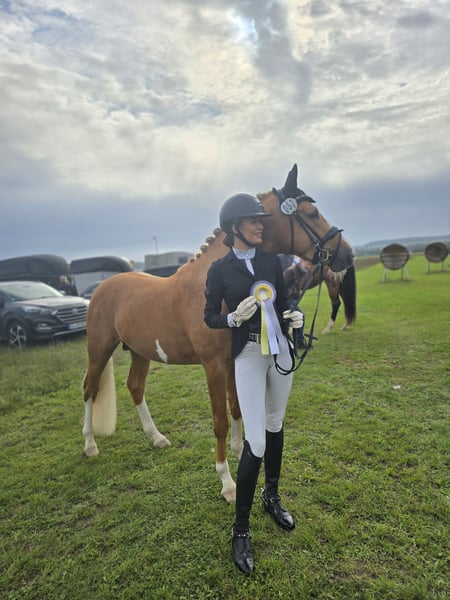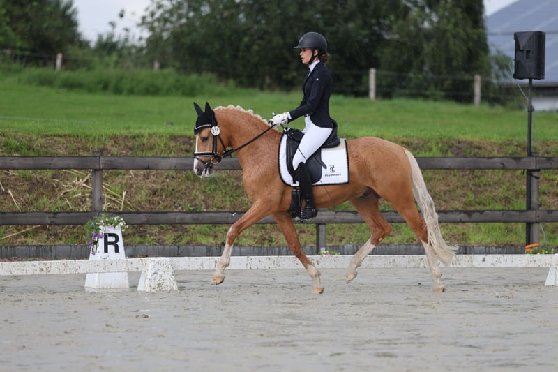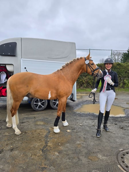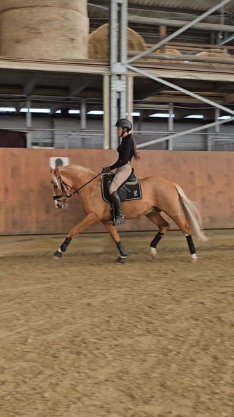 Zum Verkauf steht ein 4- jähriger, auffällig gezeichneter Palomino- Hengst im Ponymaß stehend (aktuelle offizielle Messung vorhanden: Stand Januar 2026 1,47cm) Next Chapter hat 3 hervorragende Grundgangarten, ist schonend und menschenbezogen angeritten worden und hat bereits 2025 einen zweiten Platz in einer Reitpferdeprüfung erreicht, dementsprechend ist er verladefromm. Aktuell (März 2026) wiederholt zweiter Platz in einer Reitpferdeprüfung. Unser "Happy" ist ein im Hengsttyp stehendes Pony, daher benötigt eine junge Reiterin professionelle Unterstützung bei seiner Ausbildung. Er ist absolut leichtrittig, sitzbequem und ist unter dem Sattel ein wahrer Schatz. Er kann problemlos mit anderen Pferden geritten werden und zeigt sich alleine und in Begleitung mit anderen Pferden, artig im Gelände. Er ist erprobt mit Fahrzeugen jeglicher Art. Er ist beim Schmied und Tierarzt absolut brav. Aktuell befindet er sich altersentsprechend in Ausbildung und ist eine absolute Sportskanone, er ist sehr motiviert bei der Arbeit und möchte dem Reiter immer gefallen. Mit dem entsprechenden Management ist er ein tolles Kinderpony, jedoch nur in Verbindung mit professioneller Unterstützung. Das Ponys wurde im Dezember 2024 roh gekauft und es wurde eine TÜV/AKU gemacht (Stand 2024)- kann bei Interesse eingesehen werden, seitdem hat Next Chapter keinerlei gesundheitliche Probleme in der Arbeit aufgezeigt. Selbstverständlich wird er regelmäßig geimpft und entwurmt, ebenfalls wurden im Februar 2026 seine Zähne gemacht. Mit seiner auffälligen Zeichnung, seiner goldglänzenden Farbe, seinem Sportsgeist und seinem harmonischen Körperbau, lässt Next Chapter sowohl die Träume von Kindern, als auch die von zierlichen Erwachsenen wahr werden. Ein wahrer Sportpartner, mit einwandfreiem Charakter und angenehmen Go, dem mit Sicherheit in den richtigen Händen, keinerlei Türen auch im große Viereck verschlossen bleiben. Anrufe können erst ab 16:00 Uhr entgegengenommen werden.