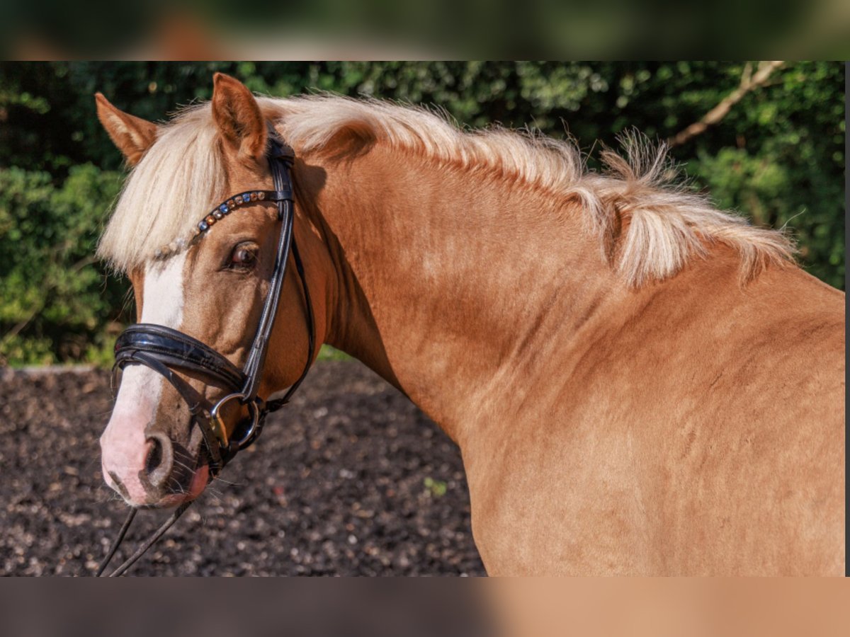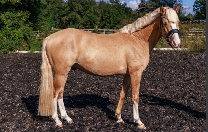 For sale is an enchanting German Riding Pony stallion born in 2022. This elegant Palomino impresses with its striking color, complemented by blue eyes, and its charming demeanor. He is truly a gentleman through and through. The stallion shows great potential in dressage and is already well-trained. He will continue to develop significantly as he is just beginning to explore his potential. He has already achieved high placings in a riding horse test against larger horses. With his friendly character and eagerness to learn, he is suitable for both experienced riders and beginners who enjoy training a young horse. Every rider who has ridden him so far has been able to smile—he simply makes riding enormous fun! He is well-socialized, familiar with handling alongside other horses, and behaves calmly. His balanced temperament makes him an ideal partner for training and leisure. If needed, he can be lunged and can remain with us for the upcoming period. Information about the sire: The handsome and gaited sire, Gründleinshofs Golden Starlight, is always performance-ready. He is extremely rideable, FEI-level competent, and equipped with a wonderful temperament. His rideability and willingness to perform have been consistently inherited, combined with three splendid, energetic gaits. In 2018, his son was the Zuchtverbandschampion of the 4-year-old stallions, and another was licensed. Further offspring are expected in the coming years. Videos and photos of his progeny can be sent via WhatsApp. Golden Starlight was a Kaderpony and has numerous wins and successes in classes L* and L**. His pedigree features the crème de la crème of riding pony breeding—Bundeschampions, winners of performance tests, highly decorated state premium mares... He is sired by the winning stallion of the 1999 Rheinische Körung, FS Golden Highlight, by FS Golden Moonlight – Power Boy – Valentino. Golden Highlight was the Bundeschampion of 3-year-old stallions in 2000 and, a year later, Bundeschampion of 4-year-old stallions in Warendorf. He was also an HLP winner and multiple show winner. He sired several licensed stallions, including Brantops Go for Gold, Go for Gold (notably, the Spitzen-Auktionsfohlen in Münster Handorf under the name Haiducci, sold for €7,200), The Black Highlight, Giuseppe, Gandalf, among others. The dam of Golden Highlight, Petty Smooth by Power Boy – Valentino – Kheman, also produced the 1st Reserve Champion of the Verden Pony Licensing in 2005, Charmant by FS Champion de Luxe. From Golden Highlight’s dam line come licensed stallions such as Domecq by Derbino and Cassini by Cocky Dundee, Disney Star by Derbino, as well as the M-level dressage mare Power and Kess by Power Boy and the highly promising mare Primadonna by Power Star B. Golden Highlight’s sire, FS Golden Moonlight, was also a champion stallion at his licensing, Vice-Bundeschampion in 1996, and Bundeschampion of 5-year-old dressage ponies in 1997. He is full brother to FS Don't Worry—his dam, St.Pr.St. FS Golden Sunlight, was Vice-Bundeschampioness in 1995, multiple Bundessiegerin, and dam of several licensed stallions including FS Chambertin by FS Champion de Luxe. From Golden Moonlight’s dam line come licensed stallions such as FS Pour l'Amour, FS Challenger, and FS Cracker Jack. Golden Moonlight’s sire, Golden Dancer, and grandsire, Dancer B, were multiple S-level dressage winners and placers against larger horses, achieving success at various championships. They have also earned a notable reputation in breeding. His dam, State Premium mare Cindy Lou, is a gem both in breeding and sport. Through her sire, FS Cocky Dundee, she is half-sister to FS Champion de Luxe, the licensed stallion, multiple Bundeschampion, HLP winner, and three-time Bundessieger. Her dam, State Premium mare Dunja Doro, is a daughter of the premium stallion FS Dacapo Doro, who is also the sire of FS Don't Worry. FS Cocky Dundee is one of the most successful Rheinische Reitponys, producing six licensed sons from two foal crops, including a licensing winner, and placed third in the stallion performance test at Münster-Handorf. If you are interested or would like further information, please do not hesitate to contact me. Don’t miss this opportunity to acquire a promising young stallion for your stable!