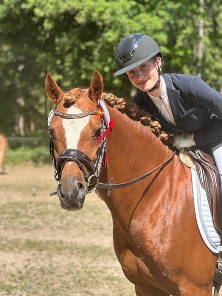 🌟 Südpfalz Diamant – a Hearthorse with Charisma, Talent, and Reliability! 🌟 Breed: German Riding Pony Gender: Stallion (licensed) Year of Birth: 2018 Height: Color: Chestnut Location: 24819 Todenbüttel ⸻ Südpfalz Diamant is a riding pony stallion that truly lives up to his name – a genuine diamond! He captivates with his stunning appearance, friendly personality, and impressive willingness to perform. ✨ Character & Training Since the age of 4, “Diamant” has been lovingly and consistently ridden and promoted by a junior rider. He consistently proves to be reliable, well-trained, and motivated – a partner you can always count on. Whether at competitions or during training at home: he always wants to please and works with a wonderful temperament. Whether in dressage, jumping, or hacking out in the fields, he is always easy and well-behaved in handling. He lives nearby my mares and foals and is always cooperative and well-mannered. ✨ Performance & Quality In 2022, he completed his 30-day stallion performance test in Neustadt/Dosse with an excellent overall score of 8.18 (4th place out of 26). His top scores speak for themselves: • Interior: 8.83 • Trot: 8.75 • Rideability: 8.50 He impresses with his strong character, relaxation, and absolute riding quality. In sport, Südpfalz Diamant has been victorious and placed multiple times up to L-level dressage, continually demonstrating his talent and composure. ✨ Pedigree & Future Prospects Sired by Diamond Touch – Der Harlekin B – Diddi Keeps Cool NRW, he combines proven performance genetics with modern riding pony elegance. Whether for dressage, high-level leisure riding, or as a valuable addition to a breeding program – this stallion is an exceptional horse with a bright future! ⸻ ❤️ Südpfalz Diamant – charming, strong character, and eager to perform. A pony that wins hearts and impresses across the board. 📹 Videos, more information, and competition records available upon request.