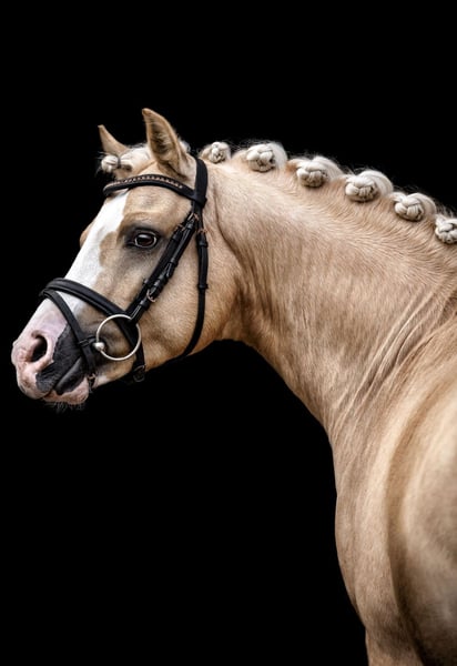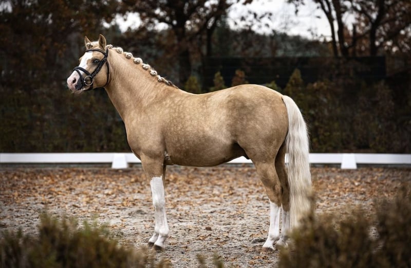 Te koop staat een uitzonderlijk aantrekkelijke dressuurponyhengst in de gewilde kleur Palomino. Met zijn opvallende bles en viermaal hoogwitte benen trekt hij alle aandacht naar zich toe. Ondanks zijn hengststatus toont hij zich in de dagelijkse omgang volledig ontspannen en zonder typische hengstengedrag. Hij is zeer braaf bij de smid en laat zich probleemloos laden. De hengst is makkelijk te rijden en overtuigt door zijn rijbaarheid en aangename temperament. Hij beheerst inmiddels alle oefeningen van klasse L en is daardoor geschikt voor zowel ambitieuze recreatie-ruiters als voor de start van wedstrijden. Hij komt rechtstreeks van de fokker. Helaas heeft hij zijn uiteindelijke maat nog niet bereikt. Bij interesse of voor meer informatie ontvangen wij graag uw bericht.
