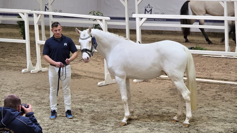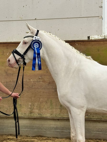 ✨Firstclass Goldrichtig✨ Der 1,47m große Cremello Hengst steht den Ponyzüchtern,in 24594 Remmels,im Natursprung,zur Verfügung. Folgende Abstammung: First Class Golden White x FS Chacco Blue x Champion Abstammungsmäßig überzeugt er auf ganzer Linie: Sein Vater First Class Golden White steht für moderne Typprägung, Rittigkeit und elastische Bewegungen. Mütterlicherseits führt er das wertvolle Blut von FS Chacco Blue, der für Vermögen, Leistungsbereitschaft und Qualität im Parcours bekannt ist. Ergänzt wird diese interessante Genetik durch Champion, der für Bewegungsstärke und bewährte Dressurveranlagung steht. Firstclass Goldrichtig belegte beim Elite-Fohlenchampionat 2023 in Groß Viegeln den 3. Platz in der Kategorie der Reitponyhengstfohlen. Bereits im Dezember 2025 konnte er sich 3. Jährig bei der Mecklenburger Hengstführung mit überragender Bewegung, einem überzeugenden Fundament und seinem ausdrucksstarken Erscheinungsbild präsentieren und wurde gekört. Zudem wurde er aufgrund seiner herausragenden Qualität mit dem Titel Prämienhengst ausgezeichnet. Er ist sogar für alle Verbände zugelassen ! Er deckt im Natursprung direkt vor Ort in Remmels. Für Stuten besteht die Möglichkeit, diese bei uns einzustallen. Es stehen ausreichend Gastboxen zur Verfügung, sodass die Stute bis zur festgestellten Trächtigkeit bei uns bleiben kann. Gerne übernehmen wir in dieser Zeit auch das Tupfern. 🥼 Alternativ ist es selbstverständlich möglich, die Stute zum Decken wiederholt zu uns zu bringen. Decktaxe 450€ im Züchterfreundlichen Splitting Decktaxe 250€ + Trächtigkeitsrate 200€ Bei Interesse gerne unter folgender Nummer 017683741080 anrufen oder eine Nachricht schicken 😃