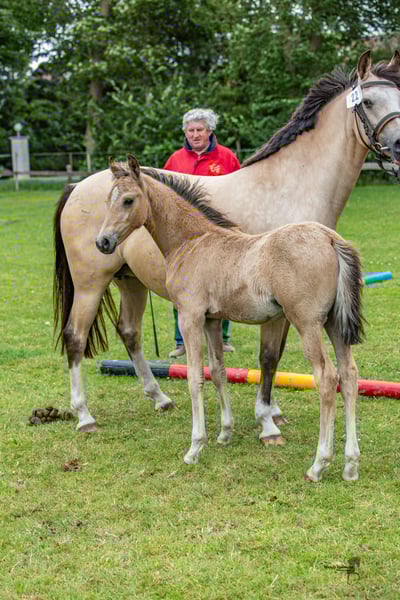 **Te koop: Duits Rijpony Hengst** Te koop is een veelbelovende Duits Rijpony hengst, geboren in 2025. Met een schofthoogte van 145 cm en zijn prachtige buckskin kleur trekt hij alle aandacht. Deze getalenteerde hengst is uitstekend geschikt voor de dressuursport. Hij heeft een evenwichtige en vriendelijke persoonlijkheid, wat hem tot een ideale partner maakt voor ruiters van alle ervaringsniveaus. Hij is goed opgevoed, braaf in de omgang en heeft al eerste ervaringen onder het zadel opgedaan. Zijn potentieel in de dressuursport is enorm, en hij zal zeker veel plezier en succes brengen. Bij interesse of voor meer informatie ben ik graag beschikbaar. Kom gerust langs en overtuig uzelf van dit geweldige paard!