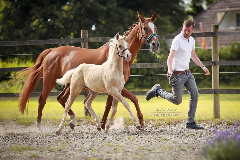 Te koop staat ons prachtige, beweeglijke en prijskeurige hengstveulen Malibu. Zijn vader is de Welsh B hengst Matrix, die de opvolger is van zijn vader, de elitehengst The Breas My Mobility, op de Kastanienhof-stal. Matrix is gekeurd voor zowel de Welsh- als de sportpony-gefokte, en onderscheidt zich door een uitstekend karakter. Hij werd gepresenteerd op de hengstenkeuring door een 11-jarige amazone. Dit jaar behaalde hij de overwinning op de hengstenprestatiekeuring in Vechta met een 9,0 voor omgang en stap, en een 8,5 voor draf. Matrix wordt zowel bereden als aangespannen. Malibus moeder, Batita de Coco AS, komt uit een oud Hannoveraans stam en heeft tot nu toe drie veulens gehad, die allemaal zijn gekeurd. De oudste dochter is van The Break my Mobility, is Verbandprämienstute en heeft al een gekeurde zoon. De grootvader van de moeder, PC Amal OX, is prestatiegericht gekeurd en is meerdere keren succesvol ingezet als dekhengst. Zijn nakomelingen zijn zowel succesvol in de lange afstand als als therapiepaarden. Malibu is aanhankelijk, halster- en longeerbaar, kent de dagelijkse gang naar de wei en wordt regelmatig voorgesteld aan de hoefsmid. Hij zal ongeveer 1,48-1,55 m schofthoogte bereiken. Bij interesse horen wij graag van u.