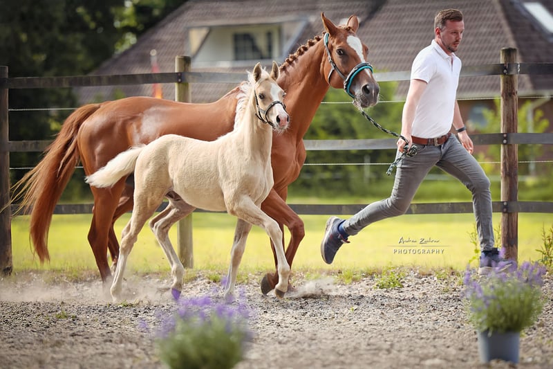 Zum Verkauf steht unser wunderschönes, bewegungsstarkes und prämiertes Hengstfohlen Malibu. Sein Vater ist der Welsh B Hengst Matrix, der die Nachfolge seines Vaters Elitehengst The Breas My Mobility auf dem Gestüt Kastanienhof angetreten hat. Matrix ist sowohl für die Welsh- als auch die Reitponyzucht gekört und zeichnet sich durch ein hervorragendes Interieur aus. Er wurde auf den Hengstvorführungen von einer 11 jährigen Reiterin vorgestellt. Dieses Jahr wurde er Sieger der Hengstleistungsprüfung in Vechta mit 9,0 für Umgänglichkeit und Schritt und 8,5 für den Trab. Matrix wird sowohl geritten als auch gefahren. Malibus Mutter Batita de Coco AS stammt aus einem alten Hannoveraner Stamm und hatte bisher 3 Fohlen, die alle prämiert wurden. Die älteste Tochter stammt von The Break my Mobility ab, ist Verbandsprämienstute und hatte bereits einen gekörten Sohn. Muttervater PC Amal OX ist leistungsgeprüft und wurde mehrfach erfolgreich als Veredler eingesetzt. Seine Nachkommen sind sowohl in der Distanz hocherfolgreich, als auch als Therapiepferde eingesetzt worden. Malibu ist zutraulich, Halfterführig, kennt den täglichen Gang zur Weide und wird regelmäßig dem Hufschmied vorgestellt. Er wird ca 148-155cm Stockmass erreichen. Bei Interesse freuen wir uns über eine Nachricht.