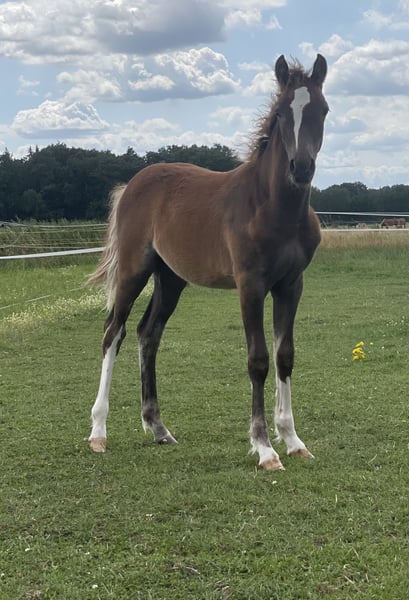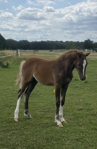 Zum Verkauf steht ein bildschönes Hengstfohlen in der begehrten Farbe Dunkelfuchs, das keine Wünsche offenlässt. Mit seiner modernen Typausprägung, dem ausdrucksstarken Gesicht und einem korrekt gebauten Fundament zieht er alle Blicke auf sich. Seine hochkarätige Abstammung garantiert beste Voraussetzungen für Sport und Zucht – ein echter Zukunftskandidat für ambitionierte Reiter oder Züchter. Der Vater ist ein erfolgreicher Springpony-Vererber, bekannt für Rittigkeit, Vermögen und Charakterstärke. Auch mütterlicherseits bringt er sporterprobte Gene mit. Highlights: • Hengstfohlen, Dunkelfuchs, sehr edel im Erscheinungsbild • Bewegungsstark • Tolles Temperament – menschenbezogen, neugierig und lernwillig • Aus erstklassiger Springpony-Linie mit hohem Leistungspotenzial Dieses Fohlen vereint Typ, Talent und Charakter – ein echtes Juwel mit Perspektive für den gehobenen Sport oder die Zucht. Standort: 46519 Alpen Kontakt: 01631329108