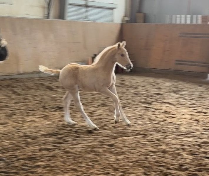 Dieser Palominohengst ist voller Freude : Hallo ich bin noch jung , aber ich bin schon recht selbstbewusst . Angst habe ich nicht - ich trabe auf dem Weg zur Weide gern vorweg ! Mit macht es soviel Spaß mich zupräsentierenn- the Show must go on - ich habe sehr viel Takt und „ Riss“ - dh ich zeige mich immer in Angebermanier - warum - weil es mir Spaß macht und ich so toll traben kann 😄😉 Aber auch mein Galopp ist sehr eindrucksvoll und immer bergauf ….. Jaaaaa ich möchte ein Hengst werden - zur Körung … Seht - schaut her - so bin ich . Da ich meinen Schwerpunkt wohl inder Dressur habe und ich überall gut sein möchte - übe ich auch schon mal das Springen …, Luftsprünge machen einfach Spaß . Zum Glück bin ich immer auf der Weide - wenn wir aus dem Stall zur Weide gehen , dann platze ich fast vor Freude . Herrlich - ich liebe das Leben . Wer mich kaufen möchte wird sicher viel Freude an mir haben und dann rocken wir das Viereck zusammen , wenn ich groß bin 🏆