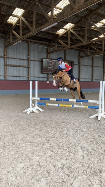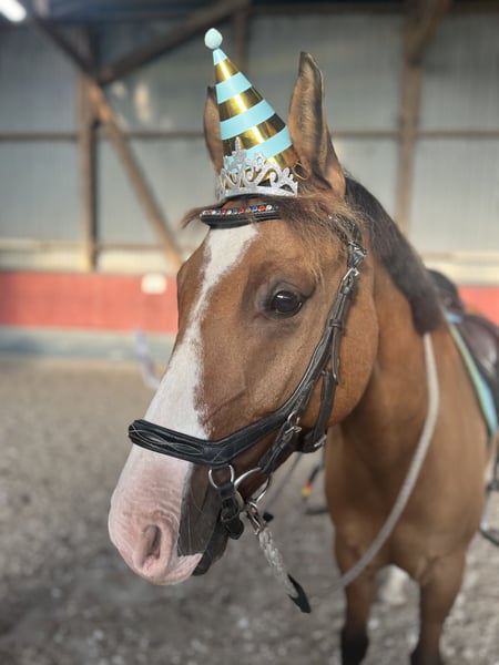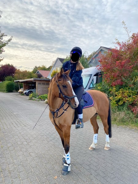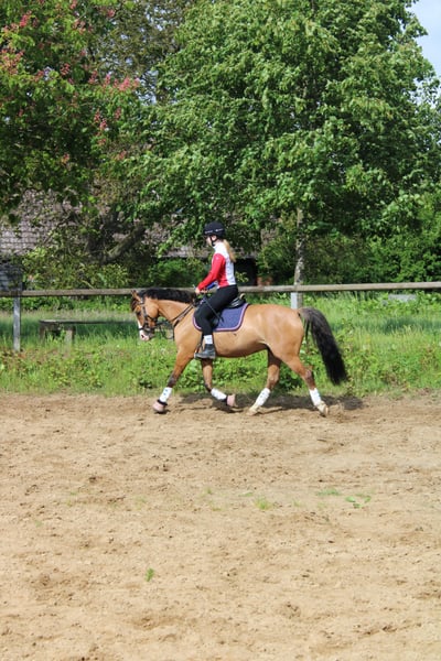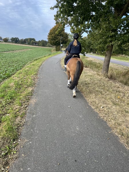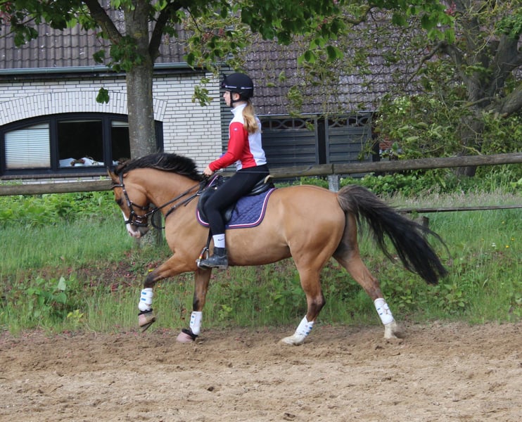 Wir trennen uns schweren Herzens von unserem Familienpony. Rocky Rabauke ist ein sportlicher Ponytyp und als braunfalbe mit Aalstrich und wunderschöner Blesse ein echter Hingucker. Er ist als Proud Rocketti und Don‘t Worry Nachfolger mit drei guten GGA ausgestattet. Wir haben ihn 4 jährig direkt vom Züchter gekauft und liebevoll selbst ausgebildet. Er ist Schmiede- und Verladefromm, ist an Trubel und Turnieratmosphäre gewöhnt, kennt Doppellonge, Bodenarbeit, Baden, Halsring reiten. Er beherrscht Lektionen wie z.B. Galoppwechsel, Außengalopp. Er ist äußerst verkuschelt und zeigt sich sehr brav und mutig im Gelände. Er hat viel Freude am Springen, ist dort jedoch auch mit „Go“ und in der Dressurarbeit mit Schwung ausgestattet, weshalb ich ihn nicht als Anfängerpony bezeichnen würde. Ansonsten ist er jedoch sehr fein an den Hilfen und bringt in der täglichen Arbeit einfach unheimlich viel Spaß. Da es kein Notverkauf ist, gebe ich ihn nur in allerbeste und für ihn passende Hände. Ich kann ihn mir für ambitionierte Jugendliche, als Freizeitpartner oder wieder für ein Mutter-Kind-Gespann vorstellen. Um Reittourismus vorzubeugen, berechne ich 30,- fürs Probereiten.. Anschauen kostet nichts ;-) Bitte anschreiben, dann gebe ich bei ernsthaftem Interesse meine Nummer raus.
