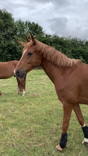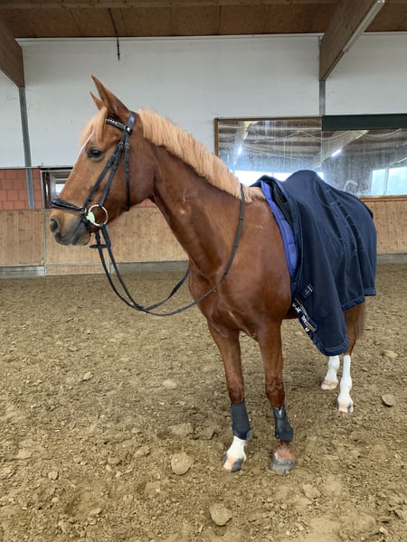 Da Vinci, known as Donni, is a handsome 10-year-old German Riding Pony gelding with a height of 1.48 m. He has been ridden recreationally and by amateurs so far, but he shows more potential. Donni is an absolute all-rounder: - Jumping & Trail: Donni loves going out for rides and showing his skills in jumping. He is always enthusiastic and has a lot of fun, and he also likes to pick up the pace. - Dressage: In dressage, he can be motivated and works well. - Leisure: reliable, well-behaved, and ready for any ride. He shows no vices such as rearing, bucking, or kicking, and he is familiar with both the farrier and the veterinarian, where he always behaves exemplary. Character: In handling, Donni is well-behaved and uncomplicated. He is particularly friendly towards children and can be easily ridden by them. With his great character and big heart, he quickly builds a bond and offers his person trust and affection. Donni is suitable for beginners and re-entrants, as well as for families. At the same time, he also provides joy for advanced riders who want to work further with him, as he cooperates well and is versatile. He can sometimes be a bit skeptical towards new situations but relaxes quickly. Those who gain his trust will have a partner for life – loyal, attentive, and cuddly. Donni is up for any fun, whether it's training, trail rides, groundwork, riding without a saddle, or just having a bit of fun – he is always well-behaved! Care: It is important to me that Donni goes to a suitable home. Ideally, a paddock paradise, active stable, or similar would be perfect. Box housing with sufficient daily turnout is also acceptable. Donni is a pony to fall in love with – well-behaved, lovable, and versatile.