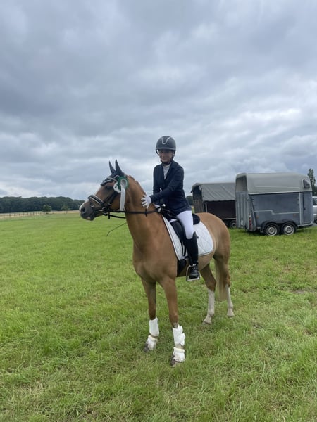 Ich verkaufe mein Dressurpony Donni, er stammt ab von: Dancing Fox x FS Don’t Worry. „Donni“ stammt direkt aus der Zucht vom Kastanienhof er bringt viel Qualität und vor allem einen sehr ehrlichen und tollen Charakter mit. Donni ist ein unkomplizierter 10-jährige Fuchfalbenwallach, er ist auf sicherem L-Niveau und zeigt bereits vielversprechende Lektionen der Klasse M. Auf dem Turnier konnte er sich bereits mehrfach bis Klasse A* platzieren und absolvierte zwei A**-Prüfungen, in denen er jeweils 1. Reserve wurde. Durch seine Rittigkeit, seine positive Einstellung und seine Qualität kann ich mir Donni sehr gut als zukünftiges FEI-Pony vorstellen. Er ist immer ehrlich und fair seinem Reiter gegenüber und zeigt keinerlei Unarten. Sein ausgeglichener und freundlicher Charakter macht ihn auch für Kinder und Jugendliche sehr interessant – er lässt sich problemlos reiten und ist angenehm in der täglichen Arbeit. Er steht gut an den Hilfen, ist leicht in Anlehnung zu reiten und vermittelt seinem Reiter ein schönes Reitgefühl. Auch im Umgang zeigt er sich vorbildlich: verladefromm, brav bei Ausflügen (z. B. ans Wasser) und stets unkompliziert. Zudem ist er gesund, hatte bislang keine Verletzungen oder Koliken. Zubehör wie Sattel und Trense kann auf Wunsch mit erworben werden. Bei ernsthaftem Interesse freuen ich mich über eine Nachricht. Gerne auch über Whats App unter der Nummer 015223249008, bitte keine direkten Anrufe