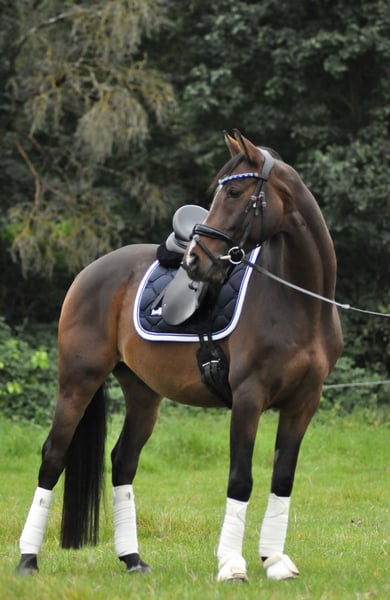 Pony castrato di 10 anni (altezza circa 1,52 m) in vendita No Limit, affettuosamente chiamato Norbert, dispone di buone GGA, è docile nel maneggio, socievole e ama i bambini. Viene regolarmente montato in arena, in campo e nel bosco. Da me è stato principalmente montato in modo dressuristico e ha anche già accumulato un po' di esperienza in concorsi minori WBO. Lì si comporta bene e ha ottenuto un punteggio nell'area degli 8. (Non adatto a chi ha grandi ambizioni di concorso a casa). Gli piace anche saltare, anche se da me non è stato regolarmente allenato in questo. Attualmente ha una ferratura con chiodi adesivi, ma può essere riportato a essere scalzo, anche se in questo caso avrà bisogno di scarpette nel bosco. Durante il giorno sta in un branco di castrati all'aperto e di notte in un box con paddock. È molto compatibile con gli altri. L'attrezzatura può essere completamente trasferita a pagamento extra. Sono disponibili radiografie del 2025 e possono essere visionate. Posto prima del prezzo. Per ulteriori domande e interesse, non esitate a chiamare o contattare tramite WhatsApp al numero 01604085276. Per escludere il turismo equestre, richiedo 30€ per la prova di monta, che verranno naturalmente detratti in caso di acquisto.