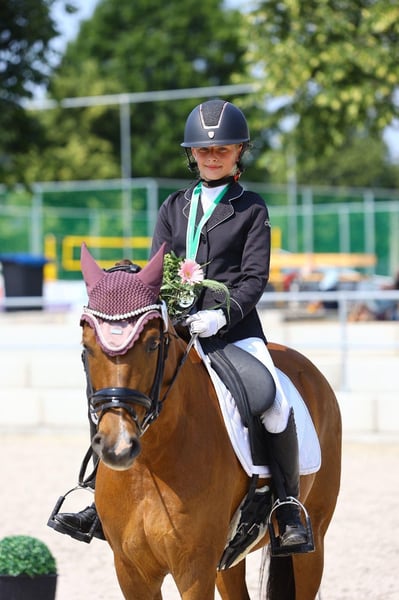 Expressief FEI-Pony Onze 11-jarige dressuurpony-merrie, Cherrytree, staat te koop omdat we helaas ons laatste ponyjaar ingaan en willen overstappen naar een groot paard. Cherry is al vijf jaar in ons bezit en heeft in die tijd samen met mijn dochter vele successen behaald. Hij heeft mijn dochter succesvol door de eerste L-dressuurwedstrijden geleid en haar voorbereid op haar eerste gezamenlijke FEI-ponyproeven. Dankzij Cherry is mijn dochter opgenomen in het pony-dressuurkader. Deze kleine pony is op de juiste leeftijd om met een kind of jeugdige in de wedstrijdsport te stappen. Cherry geeft de ruiter altijd een veilig gevoel en beschikt tegelijk over de benodigde kwaliteit voor de sport. Ondanks zijn formaat dekt hij zeer goed af en is hij in de omgang een ware schat: knuffelbaar en gemakkelijk in de omgang. Prestaties & successen: - Deelname aan het Bundeschampionat op vierjarige leeftijd - L-dressuur: vele overwinningen met cijfers van 8,8 - A- & L-dressuur: veel overwinningen en plaatsen, cijfers van 8,5 - 2023: Vicekampioen Children Tour - 2024: Brons op het Zuid-Duitse Pony-Kampioenschap (A-tour) - 2024 & 2025: tweemaal brons op het Saksisch kampioenschap, FEI-pony tot 70% Wij wensen Cherry een liefdevol 5-sterren thuis waar hij verder gestimuleerd en gewaardeerd wordt. Een trainer die het team ondersteunt, zou wenselijk zijn. Alleen serieuze interesse, graag via WhatsApp op 01731519140.