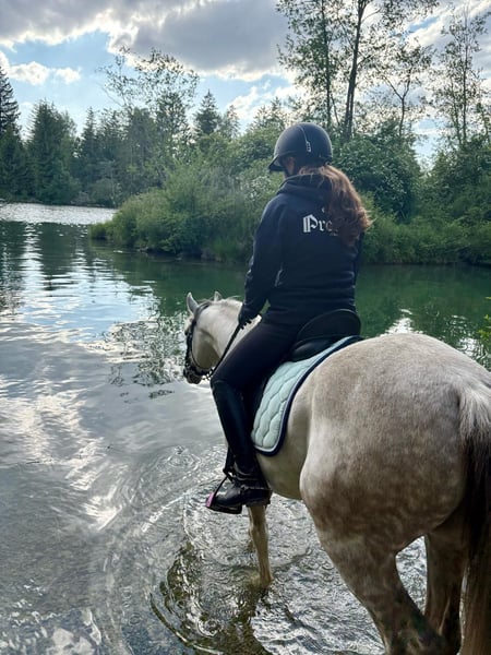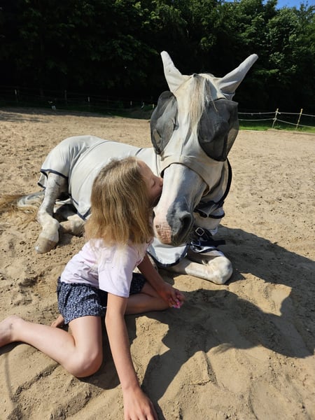 Wir müssen uns schweren Herzens von unserem Ponywallach Mick Jagger trennen, da wir nicht die Zeit aufbringen können, die er benötigt und einfordert! „Jaggy“ ist mit 3 sehr guten Grundgangarten ausgestattet und zeigt wahnsinniges Talent am Sprung. Durch sein Go würde ich ihn nicht als reines Kinderpony anbieten, mit dem richtigen Trainer und Beritt könnte ich es mir allerdings durchaus vorstellen. Meine 10-jährige Nichte kann ihn zuhause easy auf Reiterwettbewerb-Niveau reiten, da ist er absolut brav! Im Training ist er L-Parcours fertig und springt auch Geländesprünge auf A-Niveau. Dressurmäßig ist er auf sicherem L-Niveau und einzelne M-Lektionen sind abrufbar. Er benötigt jedoch einen sicheren Reiter, um dieses Niveau abrufen zu können - er will schon „geritten“ werden. Jaggy ist kein typisches Selbstläuferpony. Charakterlich ist er ein Schatz, total verspielt mit dem Menschen und fixiert auf seine Leute. Eine richtige Kuschelmaus und ein bisschen frech (der eine oder andere Reißverschluss musste schon dran glauben 😉), aber nie böse! In der Herde ist er ranghoch. Nun zum „negativen“ Teil: Jaggy hat leider ein schwaches Nervenkostüm, weshalb er damals aus dem Ponykader rausverkauft wurde (da kam er dann zu uns). Der Turnieralltag fällt ihm einfach zur Last, weshalb er stellenweise zu Panik neigt, sobald er die Glocke hört. Im Training hat er auf den selben Anlagen und Reitplätzen kein Problem! Zusätzlich dazu ist er im Gelände alleine eher unsicher und neigt auch da stellenweise zu Panik - dort benötigt er einen sicheren Reiter, Geduld und Verständnis. In der Gruppe ausreiten ist überhaupt kein Problem! Zusammengefasst ist Jaggy ein Traumpony, in das man jedoch noch einiges an Geduld und Zeit investieren muss. Am liebsten wäre uns ein Reiter der ihn fördert und fordert, für den jedoch nicht das Turnierreiten im Vordergrund steht. Dass man sein Nervenkostüm in den Griff bekommt, würde ich nicht ausschließen, wenn man über die Zeit sein Vertrauen gewinnt und mit viel Kopf an dieses Pony heranarbeitet! Platz vor Preis - wir haben keinen Zeitdruck und wollen uns ein genaues Bild davon machen, wo er hinkommt. Wir sind uns sicher, dass irgendwie da draußen seine perfekten Menschen warten. Vorbeikommen, Kennenlernen und hoffentlich verlieben. Bis bald!