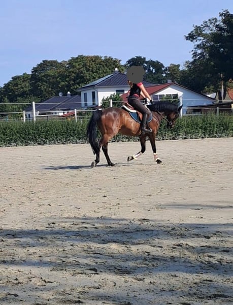 Yegua pony marrón de 11 años (148 cm) – Pony de salto – clasificada hasta A – no es adecuada para principiantes Se ofrece en venta una yegua pony marrón de 11 años con una altura de 148 cm. La yegua está entrenada para salto y tiene experiencia en competición. Ha participado en concursos de caballos jóvenes (RWB), clases de salto para jinetes en formación, así como en saltos de nivel E y A, logrando colocaciones y victorias. Tiene un carácter dulce, pero es segura de sí misma y motivada en el trabajo. Es tranquila en la forja y en el transporte, y conoce perros, tractores y maquinaria agrícola. Le encanta y necesita estar en el paddock, y es fácil de manejar, llevándose bien con sus congéneres. No es adecuada para principiantes; solo se recomienda para jinetes con experiencia, ya que siempre es manejable. Salta con precaución y con mucha reserva. Como suele decirse, extiende mucho su trasero (por lo que no es un pony para niños pequeños, hay que saber cómo sentarse). Más información, fotos y videos a petición. Prioridad a la calidad, no al precio. Precio a consultar. Por favor, solo contactar si hay interés real.