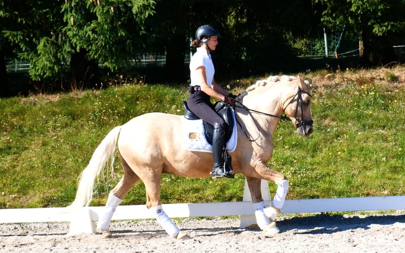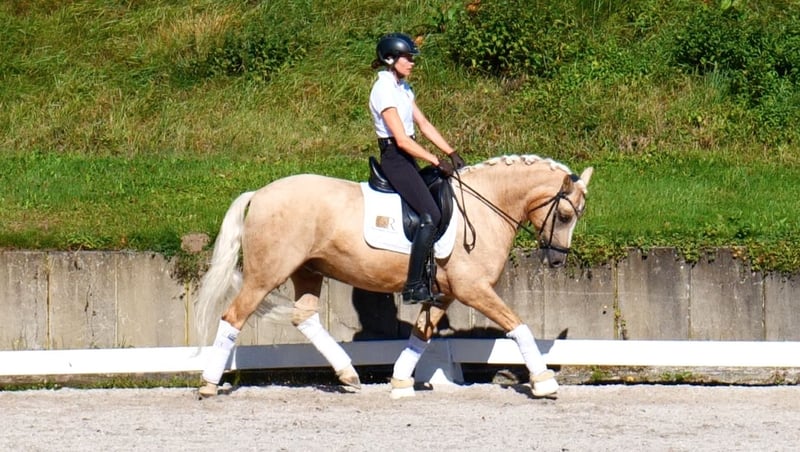 Super sweet and particularly lovable Palomino, a dream for girls and a ribbon hunter at the same time. Successful up to class L and easy to handle. Familiar with pasture and trail riding. His young rider has already moved on to a larger horse and is only letting him go into loving hands for that reason. For more information and to arrange trial rides, feel free to call anytime at 0172-5330585.