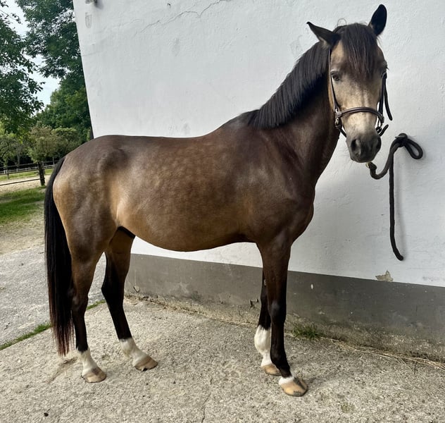 Sprzedaję mojego 11-letniego wałacha niemieckiego półkrwi reitpony (wzrost około 145 cm). Jest absolutnym skarbem w codziennym obchodzeniu się – spokojny podczas czyszczenia, podawania kopyt, uderzenia podkuwniczego i załadunku, co jest dla niego zupełnie bezproblemowe. Pod siodłem wykazuje się wyczuciem, sportowym zacięciem i motywacją, przy tym zawsze jest szczery i chętny do współpracy. Reaguje delikatnie na sygnały i sprawia dużą radość zarówno w ujeżdżeniu, jak i w terenie. Przeważnie jeżdżę na nim rekreacyjnie i potrafi samodzielnie wybrać się na przejażdżkę. W nowym otoczeniu może na początku być trochę nerwowy, ale szybko odnajduje się po spokojnym prowadzeniu. Skoki również sprawiają mu przyjemność – wykazuje tu duży talent, choć nie zajmowałam się tym intensywnie. Dwa lata temu startował raz w konkursie dla początkujących jeźdźców, co bardzo mu odpowiadało. Został sprzedany wyłącznie z powodów zdrowotnych. Wiadomo, że ma lekką alergię na kurz, którą można dobrze kontrolować poprzez odpowiednią opiekę (np. mniej pyłowe siano, dobra wentylacja). Posiadam również aktualny badanie RTG z 2020 roku. Życzę mu kochającego domu, w którym będzie dalej rozwijany i odpowiednio pielęgnowany.