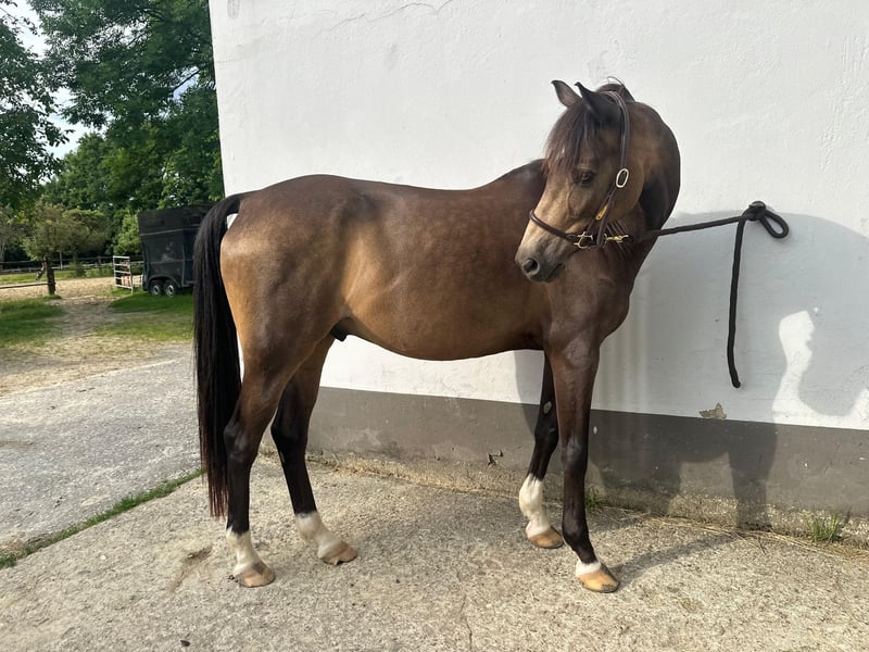 Ich verkaufe meinen 12-jährigen Deutschen Reitpony-Wallach (Stockmaß ca. 1,45 m), der sich seit 2020 in meinem Besitz befindet. Er wird nur aus gesundheitlichen Gründen meinerseits in ein neues Zuhause abgegeben, da ich mit dem Reitsport aufhören musste. Er ist im Umgang ein absoluter Schatz – brav beim Putzen, Hufe geben, Schmied und Verladen sind völlig unproblematisch. Unter dem Sattel zeigt er sich feinfühlig, sportlich und motiviert, dabei stets ehrlich und kooperativ. Er reagiert sensibel auf Hilfen und macht sowohl in der Bahn als auch im Gelände viel Freude. Ich bin mit ihm überwiegend freizeitmäßig geritten und konnte immer alleine ausreiten. In neuer Umgebung kann er anfangs etwas nervös sein, findet sich aber mit ruhiger Führung schnell zurecht. Springen macht ihm ebenfalls Spaß – er zeigt hier viel Talent, auch wenn ich das nicht intensiv weiterverfolgt habe. Stangenarbeit kennt er durch die wöchentliche Stangenstunde. Vor zwei Jahren ist er einmal in einem Reiterwettbewerb gestartet, was er sehr lieb gemacht hat. Eine leichte Stauballergie ist bekannt, lässt sich jedoch durch angepasste Haltung (z. B. staubarmes Heu und Einstreu, gute Belüftung) sehr gut managen. Aus diesem Grund wird er deutlich unter Wert verkauft. Ein einwandfreier Rönten-Tüv von 2020 liegt vor. Ich wünsche mir für ihn ein liebevolles Zuhause, wo er weiterhin gefördert und artgerecht gehalten wird. Ein Video kann auf Anfrage versendet werden. Zubehör kann ebenfalls gegen Aufpreis erworben werden (Dressursattel, Springsattel, Trense, etc.)