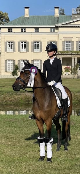 Z przyjemnością przedstawiamy pięknie ubranego ogiera „Hardy”, który wyróżnia się trzema bardzo dobrymi podstawowymi chodami oraz wspaniałym charakterem. „Hardy” już wielokrotnie odnosił sukcesy w rękach młodych jeźdźców. Może pochwalić się licznymi zwycięstwami i miejscami na podium aż do klasy L** z 12-letnią jeźdźczynią w Niemczech. Następnie trafił do młodej jeźdźczyni z Austrii, dla której przez ostatnie dwa lata był aktywnym uczestnikiem zawodów. Niestety, koń kończy już swoją przygodę z jazdą na kucykach, więc „Hardy” może pomóc kolejnemu młodemu jeźdźcowi rozpocząć sportową karierę. Ogier może być bezpośrednio wykorzystywany w konkursach FEI. Ze względu na swój idealny wzrost 148 cm, nie ma przeszkód, aby startować w sportach kucykowych i uzyskać certyfikat pomiaru na całe życie. „Hardy” jest bardzo lekko prowadzi się na grzbiecie, co sprawia, że poradzi sobie z nim także mniej doświadczony jeździec. W kontaktach jest niezwykle przyjazny i chętnie jest rozpieszczany przez swojego jeźdźca. Przy dalszym rozwoju sportowym, „Hardy” może zapewnić swojemu przyszłemu jeźdźcowi wiele sukcesów w sportach kucykowych, a także być wspaniałym przyjacielem i partnerem. Rtg z 2023 roku, obejmujące kręgosłup i szyję, dostępny. https://youtu.be/Fzn1ncEYnLM?si=yAXZim6RhjD06CmF Cena odpowiada jakości. W przypadku poważnego zainteresowania prosimy o kontakt telefoniczny pod numer +49 170 7941333.