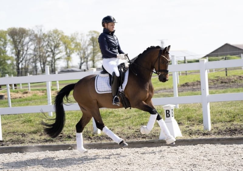 With "Hardy," we have a beautifully presented gelding who impresses with three very good basic gaits and a wonderful character. "Hardy" has already achieved numerous successes with two young riders, including several wins and placements up to the L** level with a 12-year-old rider in Germany. Subsequently, the gelding joined a novice competitor in Austria, where he has successfully represented her in competitions over the past two years. Unfortunately, this pony phase is also coming to an end, so "Hardy" can help another young rider get started in the sport. The gelding can be directly used in FEI competitions. Due to his perfect height of 148 cm, nothing stands in the way of a successful pony career and obtaining a Lifetime Measuring Certificate. "Hardy" is very easy to ride through the neck, making him suitable for less experienced riders as well. He is absolutely lovable to handle and enjoys being pampered by his rider. With further athletic development, "Hardy" can lead his future rider to many successes in pony sport and also be a great friend and partner. A 2023 radiographic examination, including back and neck, is available. https://youtu.be/Fzn1ncEYnLM?si=yAXZim6RhjD06CmF Price according to quality. For serious inquiries, please feel free to contact us by phone at +491707941333.