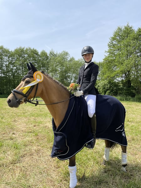 Percy kann zahlreiche Platzierungen und Siege in Dressurprüfungen der Klasse L vorweisen. Außerdem wurde er bis Kandaren L ** vorgestellt. Ausritte ins Gelände alleine oder mit mehreren Pferden sind kein Problem. Der Besuch beim Tierarzt oder beim Hufschmied sind außerdem sehr unkompliziert. Percy ist absolut lektionssicher und routiniert und ist somit ein perfekter Lehrmeister. Für uns ist die Ponyzeit größenbedingt leider vorbei. Nach einer verletzungsbedingten Pause ist Percy jedoch wieder voll im Training und auf altem Niveau belastbar. Die Verletzung ist vollständig ausgeheilt und ist für den weiteren sportlichen Verlauf nicht einschränkend. Bei Interesse oder Fragen können Sie sich gerne jederzeit unter folgender Nummer telefonisch oder per WhatsApp melden: +49 173 8904999