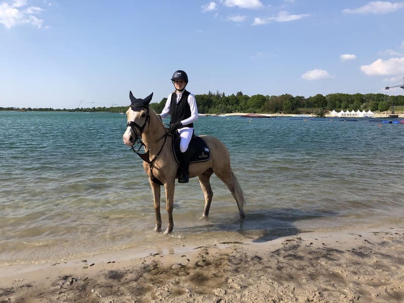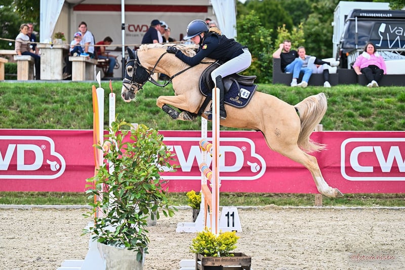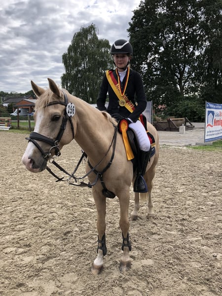 With a heavy heart, we are selling our loyal companion, "Olchi." Details: - Born in 2012 - Height: 146 cm - Show jumping placings Olchi is an absolute reliable partner in show jumping, regardless of the rider's experience or the height of the jumps. He successfully carried our daughter from beginner level up to M** class in a very short time. He is also placed internationally and holds an FEI lifetime certificate. Olchi has numerous placements in the M** class and wins in A** and L** classes. He has also achieved placements in dressage at the A** level. He has never been injured during his time with us, is well-trained, and can be used immediately in higher-level competitions. Additionally, Olchi was part of the Pony Squad Weser Ems in 2023. Olchi also provides confidence to inexperienced riders and never reacts negatively to unsuitable distances. If you're interested, please contact us via WhatsApp or by phone at +49 1514 1638998.