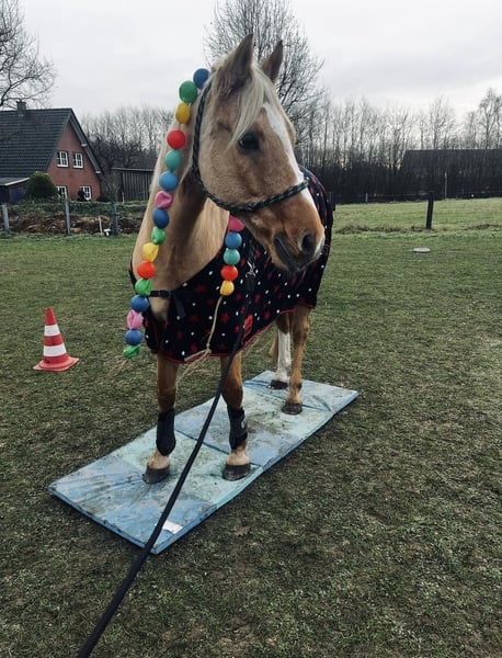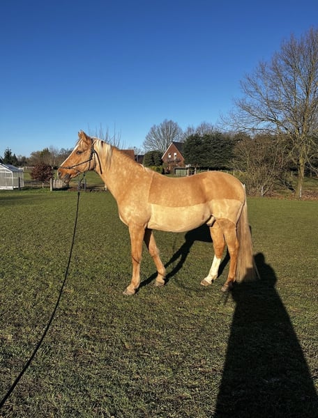 Hallo liebe Pferdefreunde, ich suche für meinen 15-jährigen Wallach „Do it“ ein neues, liebevolles Zuhause. Do it ist ein absolutes Verlasspferd im Umgang: Er ist 1,51 m groß, zeigt sich stets brav und ist besonders vorsichtig mit Kindern. Ob Dressurarbeit auf dem Platz, Stangen- und Cavalettitraining oder entspannte Runden im Gelände – er möchte seinem Reiter immer gefallen und ist für jeden Spaß zu haben. Do it hat an einem Vorderfuß einen Bockhuf. Er ist damit voll belastbar, benötigt jedoch ein konsequentes und fachgerechtes Hufmanagement. Er befindet sich aktuell im leichten Training und zeigt sich dabei motiviert und unauffällig. Da mir sein Wohlbefinden sehr am Herzen liegt, wünsche ich mir für ihn eine Boxenhaltung mit täglich viel Auslauf (Paddock/ Weide) sowie 24/7 Heuversorgung. Ich suche eine zuverlässige Person mit Reiterfahrung und einem Reitergewicht bis maximal 70 kg. Da ich ihm zeitlich momentan nicht so gerecht werden kann, wie er es verdient, gilt für mich absolut Platz vor Preis. Do it wird inklusive seines kompletten und passenden Equipments abgegeben (Sattel, Trense, Decken etc.). Da die Ausrüstung auf ihn abgestimmt ist, ist die Übernahme Voraussetzung für den Kauf. Preis: 8.500 € VB (inkl. komplettem Zubehör) Wenn du einen treuen Begleiter suchst, der einfach nur Freude macht, freuen wir uns sehr auf deine Nachricht