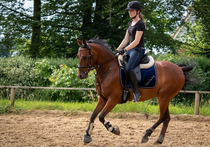 Schweren Herzens müssen wir nach vielen gemeinsamen Jahren nun Abschied nehmen von unserem Pony „Cato“ (Descarato G). Er ist ein tolles Pony, mit einem hübschen Gesicht und einem Charakter zum lieb haben. - Descarato G bei uns „Cato“ - Deutsches Reitpony - Wallach - Ca. 1,45 m (deckt auch größere Reiter ab; Reiterin auf dem Foto ist 1,66m) - Geb. 2011 Cato hat uns nun viele Jahre in unserem Schulbetrieb begleitet und vielen Kindern das Reiten beigebracht. Die Kinder durften von ihm und seiner Gutmütigkeit lernen und wachsen. Jetzt ist es Zeit sich von unserem Cato zu verabschieden, da er uns zeigt, dass er mit den wechselnden Reitern nicht mehr zurecht kommt. Cato macht jeden Spaß mit, ohne Sattel reiten, Ausreiten (in der Gruppe und alleine), geht Dressurmäßig (mit Groß und Klein) und macht auch den ein oder anderen Sprung. Auch Ausflüge auf den Geländeplatz und in die Heide zum Ausreiten durfte Cato schon erleben, dort hat er sich immer freudig und umgänglich gezeigt. Auch zum Auswärtsturnier war unser Cato schon mit unseren Reitschülern, auch dort zeigte er sich verlässlich und von der Situation unbeeindruckt. - Turniermäßig im Bereich WBO vorgestellt - Menschenbezogen, freundlich und unkompliziert im Umgang - Steht ruhig beim Schmied (vorne Beschlagen) - kennt Hunde bei Fuß, Trecker, Autos und co - Gute Grundausbildung und ansprechende Grundgangarten Einfach ein Pony zum lieb haben – und genau das wünschen wir uns für ihn. Einen Platz wo er die Nummer 1 sein darf und zeigen kann was er kann. Cato ist jedoch kein Pony für absolute Reitanfänger, hier hinterfragt er, ob die Richtung wirklich die richtige ist. Er möchte schon gefordert und gefördert werden. Bei entsprechender Auslastung ist er jedoch auch von schwächeren Reitern zu händeln. Derzeit wird er noch von ein paar Schülern auf Dressurreiter-WB Niveau geritten. Cato geht z.B. einfache Wechsel, Außengalopp und zeigt verschiedene Lektionen die ein Lehrpony können sollte. Er ist ein Pony zum Spaß haben – ob beim Ausreiten auf dem Stoppelfeld oder im Wald, auf dem Platz in der Dressur- oder Springarbeit, er macht alles mit und zeigt auch gerne was er kann. Cato kennt sowohl Offenstallhaltung als auch nachts Box und tagsüber Weide bzw. Paddock. Aktuell steht er den Sommer über in Offenstallhaltung. Wenn ihr mehr über Cato erfahren wollt oder ihn mal kennenlernen möchtet, dann meldet euch gerne, dann können wir einen Termin ausmachen. Bei Bedarf können Videos verschickt werden.