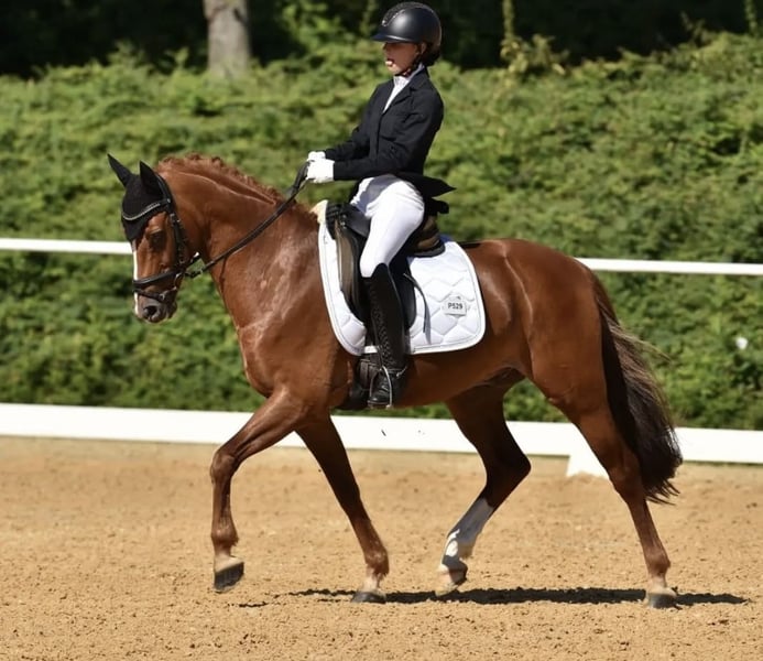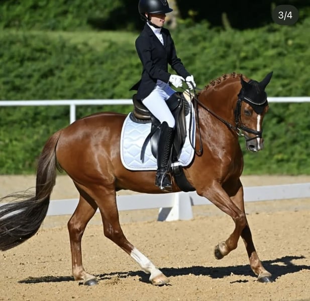 With a heavy heart, I have to part ways with my little Sunny… My pony days are over, and I have moved on to a larger horse, which is why he is now looking for a new dream home. Sunny is an absolute dream pony who always fights for his rider and tries his very best to do everything right. At competitions, he has been presented in dressage up to FEI Pony / FEI Children level and has also achieved successful placings. He is also suitable for hacking out alone; in handling, he is super gentle and manageable, making him suitable for beginners as well. He is a stunning pony that you will fall in love with.