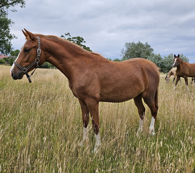 Aufgrund weiterer Nachzucht suchen wir für Calero ein neues Zuhause. Er ist im Mai 2023 geboren und wächst seitdem mit anderen Pferden verschiedenen Alters bei uns am Haus auf. Als Fohlen wurde er prämiert. Calero ist sehr menschenbezogen und zeigt sich im Umgang bisher absolut lieb und unkompliziert. Er lässt sich bereits artig von unserer 10-jährigen Tochter führen und auch Dinge wie Schmied, Putzen, Fliegenmaske, Fliegenspray und Abduschen sind kein Problem. Neben seinem tollen Charakter überzeugt er ebenfalls mit seinem lockeren Bewegungsablauf. Für weitere Informationen kontaktieren Sie uns gerne.