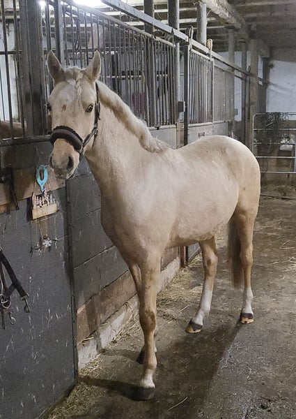 Verkaufe deutsches Reitpony – Vielseitigkeitstalent mit viel Charme! Zum Verkauf steht ein wunderschöner deutsches Reitpony-Wallach, geboren im Jahr 2024. Das Pony begeistert durch sein elegantes Palomino-Fell und ein Stockmaß von 155 cm. Es ist bestens geeignet für den vielseitigen Einsatz im Reitsport und zeigt bereits viel Potenzial in verschiedenen Disziplinen. Der Wallach ist freundlich, lernwillig und angenehm im Umgang. Er ist gesund, gut gepflegt und freut sich auf eine neue Familie, die seine Talente fördern möchte. Ganz hübscher Kopf und eine perfekte Größe! Großes Auge. Mama hier vor Ort. Sicher und erfolgreich bis A ausgebildet und vorgestellt. Bei Interesse oder für weitere Informationen stehe ich gerne zur Verfügung. Ein persönliches Kennenlernen ist jederzeit möglich!