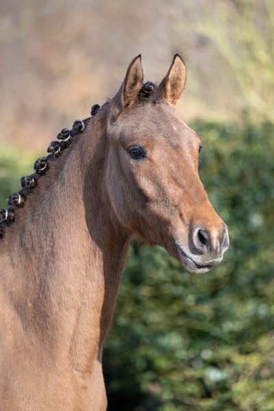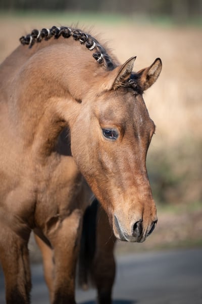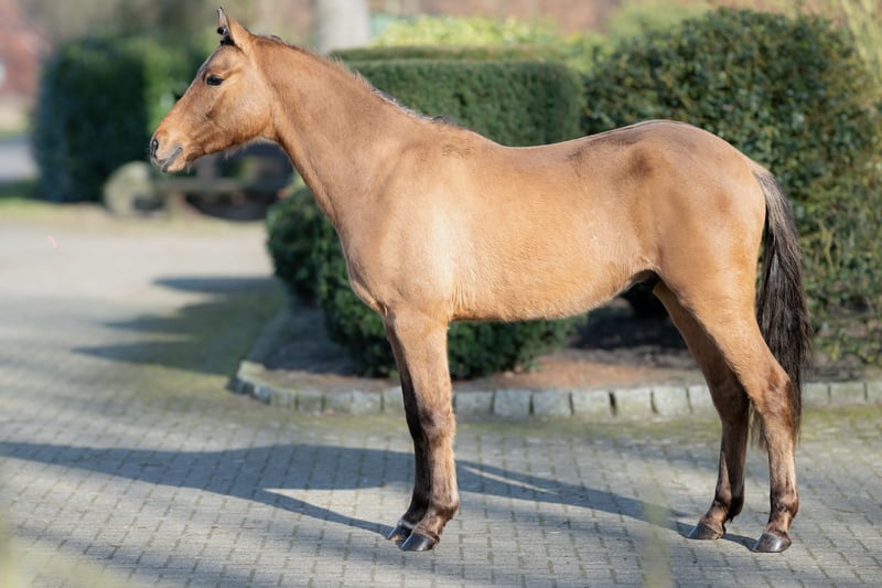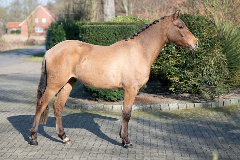 Promising 2-Year-Old Pony Gelding – Excellent Pedigree For sale is a very typy two-year-old pony gelding by Don Papa out of Pr.St.Bellevue Sk by Cooper County WE x Dance Star AT. The young colt impressed already as a foal and was awarded a premium accordingly. He exhibits three good to very good basic gaits – especially notable are his expansive walk, a lively trot, and a well-animated, uphill canter. The gelding has been raised appropriately for his age, including daily turnout on the pasture during winter, and is handled daily on the halter. He is well-behaved, friendly, and uncomplicated in handling. He is familiar with basic stable routines and behaves exemplary. Due to his quality, temperament, and friendly nature, he is well-suited for future sport use as well as as a children's pony in the making.