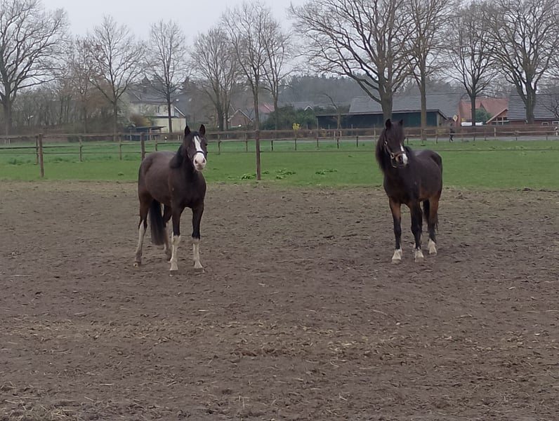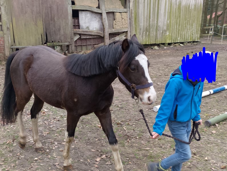 Verkaufe Deutsches Reitpony-Wallach, geb. 2023, mit einem Stockmaß von aktuell 125 cm. Der dunkelbraune Wallach überzeugt durch seine freundliche Natur und seine Entspanntheit. Dieses charmante Reitpony ist ideal für ambitionierte Nachwuchsreiter, die einen zuverlässigen Partner für das Dressurviereck oder den Springplatz suchen. Aufgrund seines angenehmen Charakters und seiner soliden Grundausbildung ist er sowohl für den Freizeitreiter als auch für den Turnierreiter bestens geeignet. Wir können uns ihn auch als Fahrpferd vorstellen, da er wenig "guckig" ist. Mit Kindern macht er es so toll. Er lässt sich holen und putzen und macht mit ihnen am Strick Bodenarbeit und bleibt ziemlich gelassen dabei. Er lässt sich verladen und gibt dem Schmied auch brav die Hufe. Er kennt auch Radlader, Trecker, Kutsche und alltäglichen Kinderlärm. Er steht bei uns mit Großen und Kleinen auf einer gemischten Weide und geht abends in seine Strohbox. Im Sommer steht er auch oft nachts draußen. Ein echtes Highlight für alle, die ein talentiertes und liebenswertes Reitpony suchen, das mit viel Potenzial und Charme begeistert. Bei Interesse stehe ich gerne für weitere Informationen und eine Besichtigung zur Verfügung. Auf dem einen Bild ist seine 4j. Vollschwester (132cm) zu sehen und auf seine Mama ist auch zu sehen.