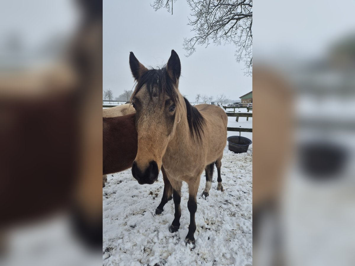 Verkaufe deutsches Reitpony – Wallach, geb. 2023, Buckskin, Stockmaß ca. 142 cm Dieser bezaubernde deutsche Reitpony-Wallach ist ein echtes Schmuckstück für alle, die ein talentiertes und charmantes Pferd suchen. Geboren im Jahr 2023, überzeugt er durch seine elegante Erscheinung und sein freundliches Wesen. Das Buckskin-Farbkleid macht ihn zu einem echten Blickfang. Er hat einen angenehmen aufgeschlossenen Charakter und ist bei mir in einer Jungpferdeherde gut aufgewachsen. Ich habe ihn als Fohlen gekauft und wollte ihn eigentlich selber ausbilden, was ich aber jetzt nicht mehr leisten kann. Sein Vater Steendieks Cantuccini (Tackmann´s Cantuccini) erfolgreich bis Klasse S stammt vom berühmten FS Chambertin ab. Er bringt sehr geschmeidige und raumgreifende Bewegungen mit, daher sehe ich ihn als potenzielles Dressurpony. Bei Interesse oder weiteren Fragen stehe ich gerne zur Verfügung. Eine Besichtigung ist nach Absprache möglich.
