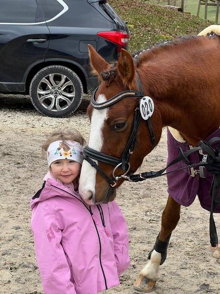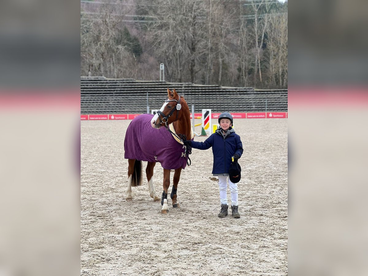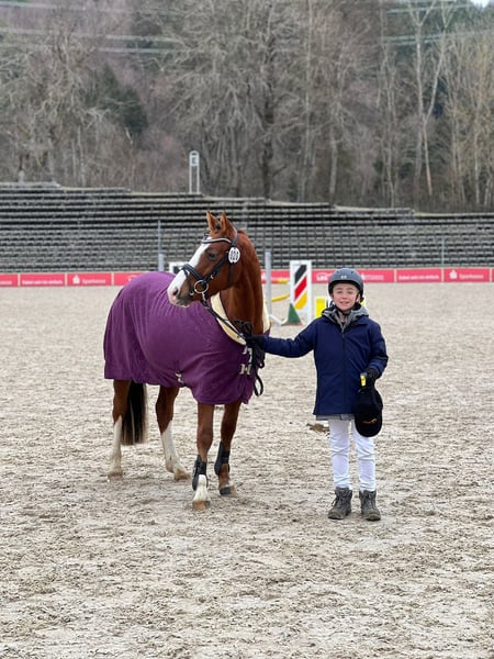 Wir bieten unseren Prinz (GründleinshofPresident/Steendieks Mr.Mo)wegen Überbestandes zum Verkauf an. Ende Mai wird er 3, er ist leicht anlongiert, an Trense gewöhnt , im üblichen Umgang unkompliziert und kooperativ, etwas schwer tut er sich noch beim Aufheben der Hinterbeine. Er ist allein von meinem Sohn zu verladen, kennt dies da wir die Jungen mit dem Hänger auf die Sommerweiden bringen. Ich habe ihn mit 1,43 m gemessen, wir haben ihn anlässlich des FreispringWettbewerbs in Marbach vorne beschlagen. Er ist Tetanus und Influenza geimpft. Kindern ist er sehr zugetan, bei fremden ist er etwas misstrauisch. Seine Mama geht bei uns im hippolini mit den kleinsten und ist aber auch ein beliebtes Reitpony bei den Fortgeschrittenen Reitern. Sie ist 1,54m und eine kalibrige Stute. 2024 stellte sie das Siegerfohlen bei der FS Schwäbisch Hall. Sie entspringt der Linie der Bodethals Aenn, die im Ausland international erfolgreiche Nachkommen im Fahr und Springsport brachte. Mit dem Anschluss an Principals Boy väterlicherseits haben wir auf ein stabiles ,umgängliches Mehrnutzungshuhn für den Kinderbereich gehofft, was er bisher bestens erfüllt. Aufgrund seines Wesens, Bewegungsablauf und Springmanier als Hunter interessant. Eine kompetente Hand und gerne ein Endplatz wäre uns wichtig. Video vorhanden