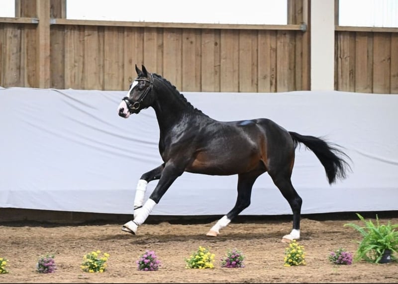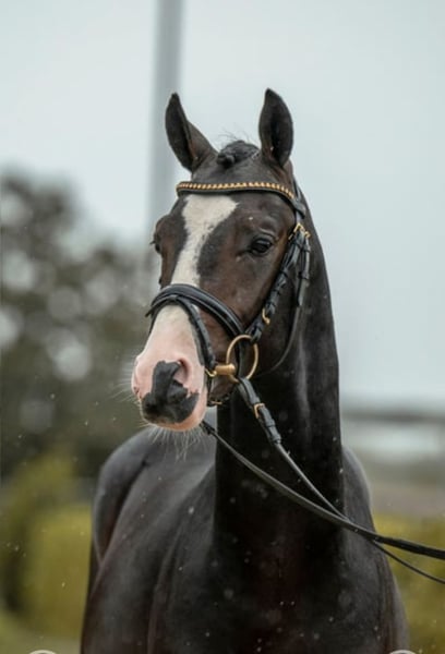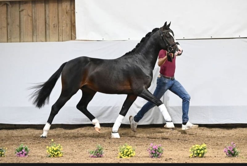 3.5-year-old German Riding Pony approximately 144 cm / 2022 Galaxy is an incredibly sweet and affectionate pony with a heart of gold. He is familiar with tractors and dogs and is always easy to handle. He has a great attitude, always tries to do his best, and wants to please. He was gently backed with breaks and has no issues with rearing, biting, or similar behaviors. He comes from an excellent pedigree ( sire Genesis BL ) and jumps exceptionally well in free jumping. He has great potential and, with further training, could certainly become a wonderful competition pony or children's pony.
