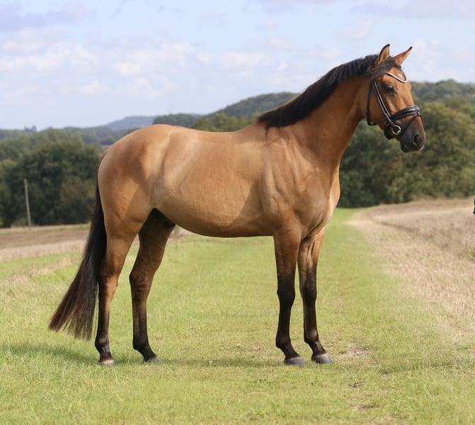 We are selling our 3-year-old gelding by Don Deluxe RB x Dimension AT. He is currently being trained in various disciplines by us. Whether it's trail riding, dressage, groundwork, or galloping across the field, he masters everything with flying colors. He has also jumped a small jump already. He possesses 3 very good basic gaits! At the moment, he is being ridden by an 11-year-old child (video available). Definitely a future children's pony. If interested, please contact us at 015229060062! Price is negotiable; a good home is more important to us.