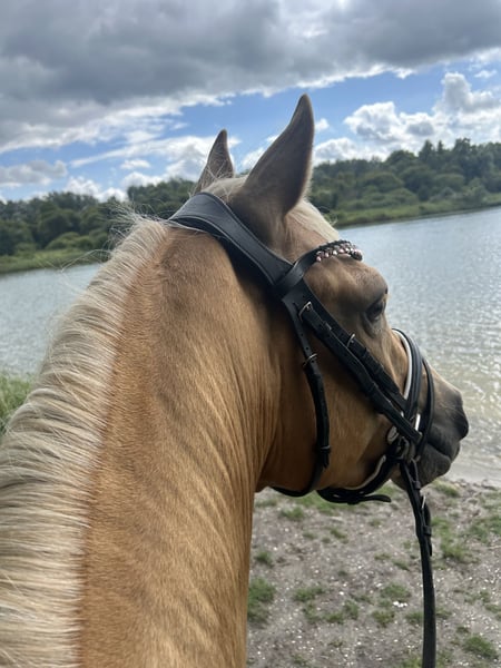 Our riding pony gelding Dunes Charm – affectionately called "Dino" – is looking for a new, nurturing home. Dino is currently being gently backed and shows himself to be very eager to learn and people-oriented. He still needs a rider with empathy who can provide him with security and continue his training in a trusting manner. His mother, the state premium mare Strohpuppe, is a daughter of the proven top stallion Brillant. Further offspring can be viewed and are also for sale. Dino is also impressive on his father's side: he comes from the same breeding as his father Don Papa WE, who is now successfully competing up to the M class in dressage. We wish for Dino a loving home where he will be supported and given the necessary time to continue to mature.