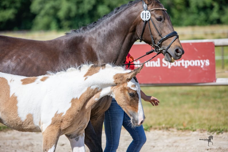 Schweren Herzens biete ich meinen im März 2022 geborenen Ponywallach Deichtrommler NH zum Verkauf an. „Trommel“ ist ein Deutsches Reitpony und ein Falbschecke. Er wird voraussichtlich das Endmaß erreichen. Er ist halfterführig, kennt das Anhängerfahren und wird regelmäßig dem Hufschmied vorgestellt. Außerdem wurde er regelmäßig entwurmt und geimpft. Trommel ist sehr neugierig und zeigt sich bis jetzt unerschrocken (Plastiktüten, Trecker, Hühner, Hunde, Musik etc kein Problem). Hinzukommt, dass Trommel sehr verschmust ist und den Kontakt zum Menschen sucht. Er stammt ab vom Ponyhengst Kastanienhof Donnertrommler(s.letztes Foto), welcher im Ponydressursport erfolgreich ist. Mütterlicherseits stammt er von Shootingstar ab, einem bis in die Klasse M erfolgreichen Pintohengst. Trommel verfügt über 3 sehr gute Grundgangarten und einen korrekten Körperbau. Er wird mit Sicherheit ein liebenswerter Partner, der nicht nur durch sein Aussehen und seine Bewegung, sondern auch durch seinen Charakter punkten kann. Er wird nur an ein 5* Zuhause verkauft. Weiter Informationen sowie Bilder und aktuelle Videos können erfragt werden. Platz vor Preis