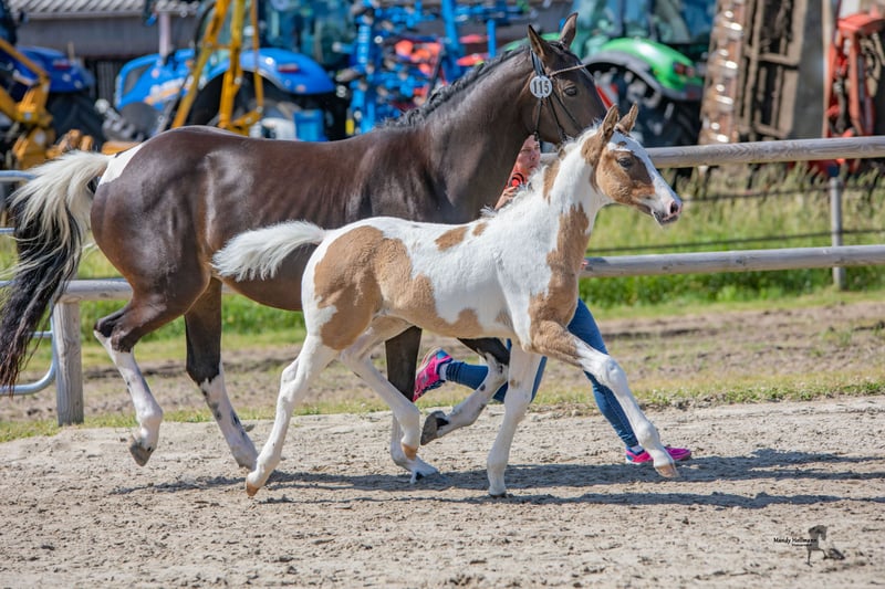 Met pijn in mijn hart bied ik mijn in maart 2022 geboren ponyhengst Deichtrommler NH te koop aan. "Trommel" is een Duits rijpony en een valkschimmel. Hij zal naar verwachting zijn eindmaat bereiken. Hij is halstergeleid, kent het trailer rijden en wordt regelmatig aan de hoefsmid voorgesteld. Daarnaast is hij regelmatig ontwormd en gevaccineerd. Trommel is zeer nieuwsgierig en toont tot nu toe weinig schrik (plastic zakken, tractoren, kippen, honden, muziek, etc. geen probleem). Bovendien is Trommel erg knuffelig en zoekt hij contact met mensen. Hij is afstammend van de ponyhengst Kastanienhof Donnertrommler (zie laatste foto), die succesvol is in de ponydressuursport. Van moederszijde stamt hij af van Shootingstar, een tot in de M-klasse succesvolle pintohengst. Trommel beschikt over 3 zeer goede basisgangen en een correct lichaamstype. Hij zal zeker een liefhebbende partner worden, die niet alleen door zijn uiterlijk en beweging, maar ook door zijn karakter kan overtuigen. Hij wordt alleen verkocht aan een 5*-thuis. Voor meer informatie, foto's en actuele video's kan er contact worden opgenomen. Plaats voor prijs.