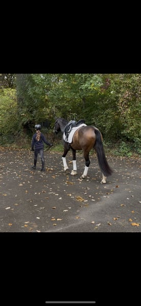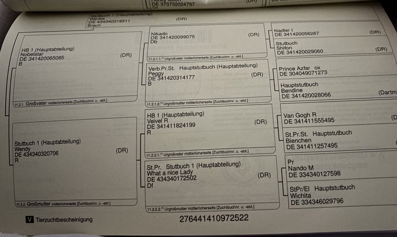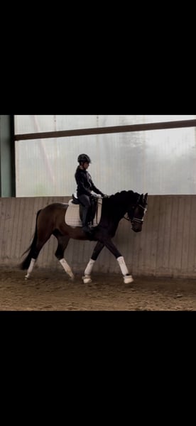 À vendre, un hongre bai de 3 ans, élevé par ses soins, issu de Gipfelstürmer du Gründleinshofs x Nobelstar, avec une taille au garrot de 1,48 m. C’est un cheval compact, bien construit, qui séduit par sa belle apparence et ses trois allures de base très bonnes. Pour son âge, il se montre déjà très équilibré, avec un rythme de base agréable et adapté. En daily handling, il est totalement facile, amical et toujours attentif à bien faire. Il a déjà été monté par des enfants et répond parfaitement aux aides – un jeune hongre qui procure simplement du plaisir et inspire la confiance. Montez, partez en balade et sentez-vous bien. Il a déjà participé à ses premières compétitions et y a prouvé sa qualité et sa sérénité. De bonnes radiographies sont disponibles.