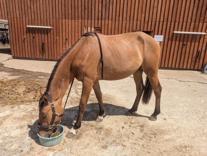 Der dreijährige Kalle wird aus zeitlichen Gründen in nachweislich gute Hände abgegeben. Abstammend vom Bucha-teilnehmer Damaszener K, MV Champion de luxe, bringt er bestes Reitponyblut mit. Als Fohlen erhielt er die goldene Fohlenprämie, würde die letzten Jahre absolut artgerecht im gemischter Herde aufgezogen. Wer ein absolut unverbrauchtes Pony zum selbst ausbilden sucht, wird bei unserem "Kalle" fündig. Mit sehr schönen Grundgangarten ausgestattet und einem hervorragenden Nervenkostüm, verspricht unser Kalle ein toller Begleiter für kleine Erwachsene und/ oder Kinder zu werden. Die ersten kleineren Stangen- und Freispringaktionen meistert er gut, dass wir auch abseits der Dressur im Springen Potential sehen. Aktuell befindet er sich in einer schonenden Ausbildung, ist schmiede-sowie verladefromm, gut anlongiert und hat die ersten Male einen Sattel getragen, Schrecktraining absolviert und kennt Straßenverkehr. Charakterlich ist dieses Pony eine 10/10 und wird nun in fördernde Hände verkauft. Aktuell steht er in einem gemischten Offenstall und zeigt sich äußerst sozial in der Herde. Weitere, aussagekräftigere Videos/ Bilder gerne auf Nachfrage, Eine AKU kann auf eigene Kosten gerne durchgeführt werden. Ausdrücklich Platz vor Preis.