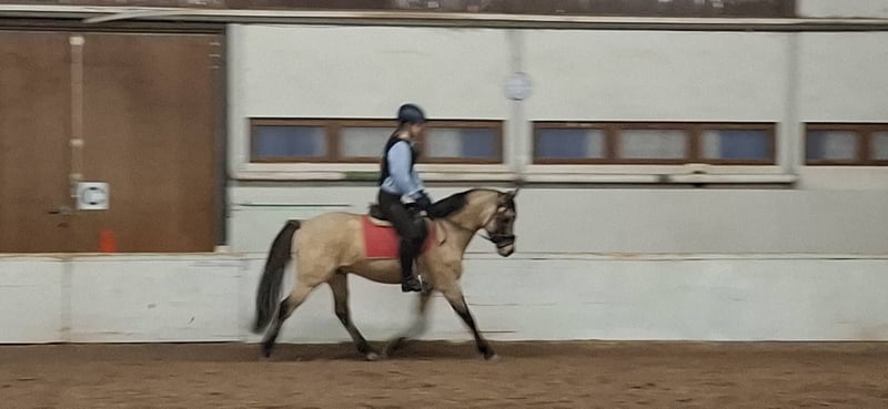 Der kleine Prinz vom Filstal ist ein Pony aus 2021 mit derzeit einem Stockmaß von 1.44m. Er ist nicht nur optisch ein echter Herzensbrecher er lässt auch unter dem Sattel keine Wünsche offen. Seine Mutter Frl. Felicitas war in den Jahren in denen sie im Sport ging das erfolgreichste Baden Württemberger Pony in der Vielseitigkeit. Sie hat mehrmals die Prüfungen in der Vielseitigkeit A * und ** Sterne gegen Großpferde gewonnen und war auch in L-Springen siegreich gegen Großpferde. Sie hat die richtigen Einstellung am Sprung und hat das an ihren Sohn weiter vererbt. Frl. Felicitas ist als Sportregisterstute aufgenommen ins Zuchtbuch in Baden Württemberg. Prinz wurde gekört und süddeutsch anerkannt. Mittlerweile geht er stressfreier als Wallach durch die Welt. Er wurde solide angeritten ist brav und willig und sehr rittig, wurde aber erst spät gesprungen (Dezember 2025).Die Bilder sind aus den ersten 3 Springeinheiten seiner Ausbildung unter dem Sattel. Sofort war zu bemerken, dass er hierfür genügend Herz hat und die richtige Einstellung hat. In der Dressur ist er willig, beginnt Last aufzunehmen und sich zu präsentieren. Alle drei Grundgangarten, wie bei einem gekörten Hengst üblich, sind überdurchschnittlich. Das Freispringen ist aus seiner Körung und der süddeutschen Anerkennung. Im Film im dem er steht wird sehr schön beschrieben wie er einzuschätzen ist. (Ton anmachen) Sein Vater ist Kastanienhofs Donnertrommler. Kastanienhof Donnertrommler ist ein dressursportlicher Musterschüler und Jahr für Jahr ein Erfolgsgarant. Er war siegreich in Reitpferde- und Dressurpferdeprf. Kl. A und mehrfach platziert in Dressurpferdeprf. Kl. L. 2017 und 2018 platzierte er sich im Bundeschampionatsfinale in Warendorf. Ende 2017 absolvierte er seinen HLP-Kurztest in Münster-Handorf als Sieger wobei er in allen Grungangarten gleichmäßig hoch benotet wurde und in der Rittigkeit mit 9,08 erwartungsgemäß punktete. Auf der FN-Bundeshengstschau 2019 in Berlin war Donnertrommler Endringhengst der jüngeren Hengste und wurde mit der FN-Bundesprämie ausgezeichnet. Mittlerweile ist Donnertrommler im FEI-Sport erfolgreich und in 2021 auch bereits international in Kronberg platziert. Diese Leistung ist kein Zufall: in direkter Folge reihen sich in seinem Pedigree die internationalen FEI-Sieger Dornik B, Kennedy WE und FS Don’t Worry aneinander. Alle drei feierten ebenfalls Erfolge in Dressur Klasse S und waren bis ins hohe Alter sportlich aktiv und erfolgreich. St.Pr./El.St. Diva Delight ist Vollschwester des WE-Siegerhengstes Kastanienhof Kentaur WE und Halbschwester des WE-Siegerhengstes Kastanienhof Cockney Cracker WE. Die Ur-Großmutter Nontesse brachte neben Delight die beiden gekörten Hengste Danny’s Dream (S-Dr.) und Delgado (M-Dr., 7. Pl. EM 2001) sowie zahlreiche Sportponys in allen Sparten. Der kleine Prinz vom Filstal wartet auf SEIN Kind mit dem er viele viele Jahre erfolgreich im Sport seinen Weg gehen kann. Kein Notverkauf und kein zur Verfügung stellen. Der Preis ist im Moment noch verhandelbar. Wenn er weiter in Beritt geht und dann auf Turnier vorgestellt wird, kann er nicht auf dem Stand bleiben. Standort Baden Württemberg.