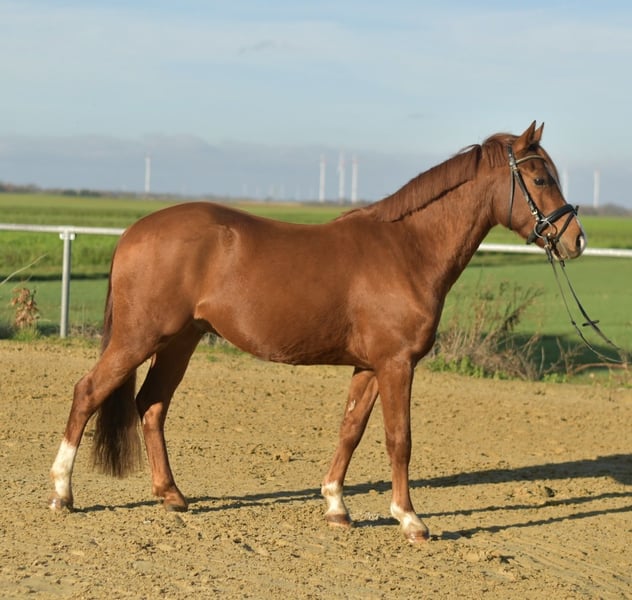 ** Reitpony Wallach Namir** Entdecken Sie das Traumpony Namir – ein wunderschöner deutscher Reitpony Wallach, der mit seinem charmanten Wesen und seinem beeindruckenden Exterieur überzeugt! Namir ist nicht nur ein echter Kumpel, sondern auch ein vielseitiger Partner, der jede Menge Spaß beim Reiten bietet. **Highlights:** - **Vollständige Röntgenbilder** ohne Befunde vorhanden. - **Lernwillig und brav**: Ideal für Kinder und Anfänger. Namir zeigt sich beim Reiten äußerst gelassen und brav. - **Unerschrocken und cool** in jeder Lebenslage – sei es beim Ausreiten alleine oder in der Gruppe. Im Sommer genießt er die Zeit auf der Wiese in einer harmonischen Wallachherde und zeigt sich dort sehr verträglich. - **Bodenarbeit und Vertrauensübungen** sind für ihn ein Kinderspiel – er ist stets motiviert und bereit zu lernen. **Besonderes Angebot:** Bei sofortiger Mitnahme erhalten Sie 5% Rabatt auf den Verkaufspreis! **Testmöglichkeit:** Überzeugen Sie sich selbst von Namirs Fähigkeiten! Wir bieten Ihnen die Möglichkeit, ihn eine Woche lang zu testen. Diese Probewoche kann von erfahrenen Trainern begleitet werden, und Sie können Unterricht mit dem Testen kombinieren. Beachten Sie bitte, dass eine Probegebühr anfällt, die nicht vom Kaufpreis abgezogen wird. **Probereiten:** Gerne können Sie Namir bei uns anschauen und ausprobieren. Die Kosten für das Vorreiten oder Probereiten betragen 30 € pro Person. Lassen Sie sich diese Gelegenheit nicht entgehen – Namir wartet auf seinen neuen besten Freund!