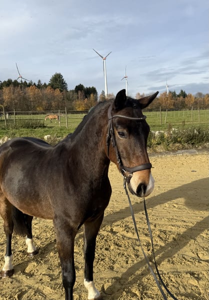 Im Auftrag zu verkaufen: Dai Dai ein 4-jähriger New Forest Pony Wallach mit einer Größe von 1,45 m. Er ist bereits gefahren. Abstammung: Sirocco‘s Kensington * Havehoeve‘s Floris Er überzeugt vorallendingen durch seinen entspannten Charakter & seine Lernwilligkeit. Super brav und engagiert im Training, ist er mit guten GGA ausgestattet. Videos sind vorhanden. Interessiert? Dann melde dich gerne für mehr Informationen per PN oder telefonisch unter +4917634635813.🐴💫