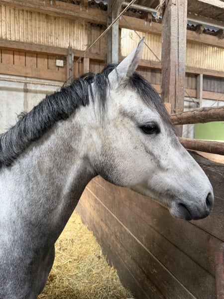 Unser 4-jähriger Ponywallach Alfi ist ein äußerst menschenbezogenes und freundliches Pony, das aktuell am Anfang seiner Ausbildung steht. Im täglichen Umgang zeigt er sich immer brav, unkompliziert und sehr angenehm im Handling. Alfi verfügt über sehr gute Grundgangarten. Am Sprung überzeugt er durch Mut, Übersicht und ein bereits erkennbares Vermögen, was ihn besonders für eine sportliche Weiterentwicklung interessant macht. Wir können Ihn uns sehr gut in Dressur sowohl als auch im Parcours vorstellen. Aufgrund seines Alters und Ausbildungsstandes ist er aktuell noch kein Anfängerpony, bietet jedoch die ideale Basis für Reiter, die sich ein Pony mit Perspektive selbst weiter ausbilden möchten. Wer ein ehrliches, talentiertes Nachwuchspony mit viel Potenzial für die Zukunft sucht, wird mit Alfi einen passenden Partner finden.
