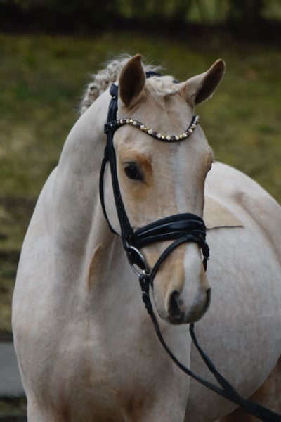 For sale: This 4-year-old, approximately 14.1 hh gelding by Nanchos Golden Star out of FS Don’t Worry. Findus is a very well-behaved and friendly pony both in handling and under saddle, and he enjoys spending time with his person. With three very good basic gaits and plenty of expression, he shows great potential to become an excellent dressage pony. He is very responsive to aids and, due to his temperament, would be ideal for children in the future. His quality also makes him an interesting prospect for FEI pony training! X-rays are available and show no abnormalities. ‼️If interested and for videos, please contact exclusively by phone or WhatsApp at 0176 21729218. Inquiries via eBay or ehorses will not be answered.‼️ The horse is not available for leasing or installment payments.