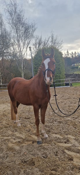 We are offering our 4-year-old gelding (Dornik Double × Principal Boy), who possesses excellent basic gaits and is very easy to handle, curious to learn, and well-mannered. He is already very well proportioned in conformation and has been trained to drive single with a cart. He has also been trained with double lungeing. He has not been ridden yet. He is completely herd-safe, farrier- and loading-friendly. Please contact us to arrange a viewing appointment if interested. Additional videos are available upon serious interest via email or WhatsApp. Contact at: 0173-5800815