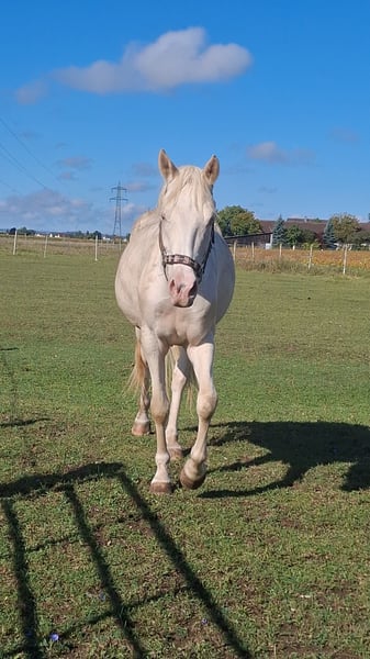 Verkaufe deutschen Reitpony-Wallach, geb. 2022, in Sonderfarbe mit einem Stockmaß von 148 cm. Dieser charmante Cremello zum selbst ausbilden ist ein vielversprechender Nachwuchs für den Dressursport und besticht durch sein freundliches Wesen sowie seine ausgeglichene Art. Das Pony ist gesund, und wurde regelmäßig tierärztlich betreut. Ideal für ambitionierte Nachwuchsreiter. Die Mutter war Bundeschampionatfinalistin und auch in Österreich sehr erfolgreich-Siegerin bei den Landesmeisterschaften. Bei Interesse stehe ich gerne für weitere Informationen und eine Besichtigung zur Verfügung.