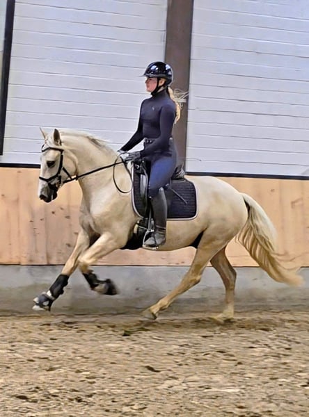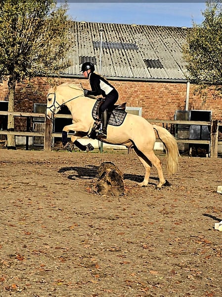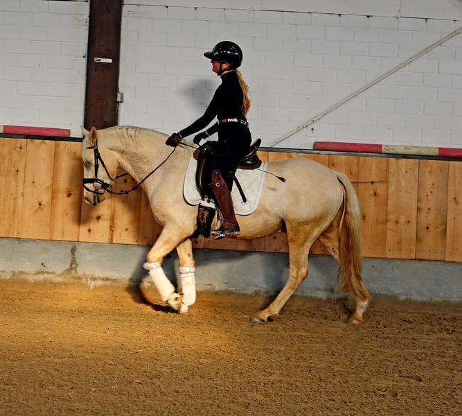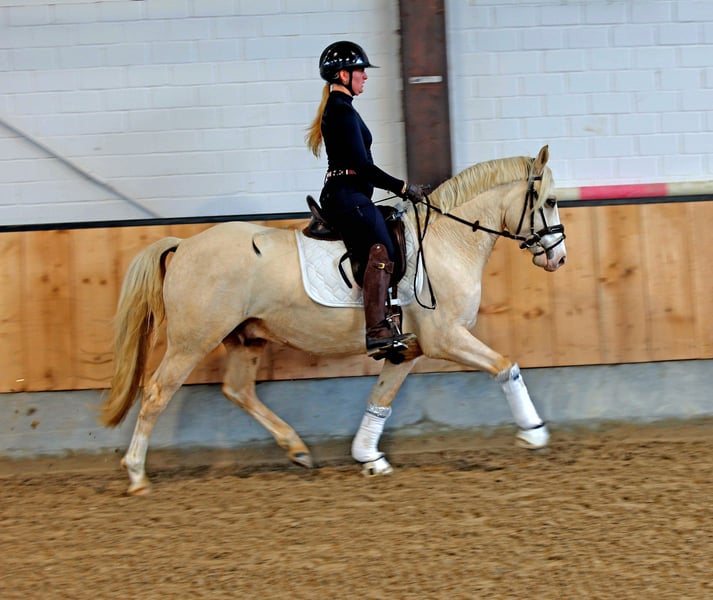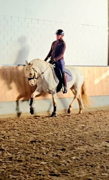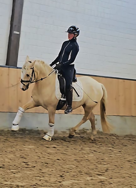 Dieser absolut tolle Kerl abstammen von Diamond Touch NRW sucht ein Traum Zuhause. Videlink: https://youtube.com/shorts/FgbQpGwQo3c?si=SWBXOkjkzYgBheLd Solide in Ruhe angeritten, hat er niemals auch nur eine falschen Tritt gemacht. Ob in der Halle, auf dem Springplatz oder bei einer Runde um den Block, immer stellt er hier seinen Traum Charakter unter Beweis. Er lässt sich brav auch mit Pad reiten und ist von Anfang an auch von kleineren Kindern super zu handeln gewesen. Er bleibt zum Kuscheln mit den Kids in der Box entspannt liegen, ist aber unter dem Sattel fein genug um sein Potential auch im FEI Sport entfalten zu können. Er macht brav einen kleinen Sprung und wir erwarten, dass er demnächst auf dem Turnier genau so einen Topjob macht wie daheim und in Reitpferde Prüfungen Schleifen mit nach hause bringt. Er deckt super ab ( Reiterin auf den Bildern 1,68) und ist leicht in der Hand und easy an den Zügel zu reiten. Der Traumkerl zeigt 3 sehr gute Grundgangarten mit FEI Potential. Er ist super artig beim Schmied -selbst beim ersten Beschlag - und war hier ohne Sedierung entspannt zu scheren. Gute Röntgenbilder inkl Rücken liegen bereits vor. Ein Traum Pony für eine Mutter Tochter oder Geschwister Kombination bei der ein Reiter dieses Traumpony weiter ausbilden kann. Videos und weitere Infos unter : 0177 275 9886 Instagram: https://www.instagram.com/s/aGlnaGxpZ2h0OjE3OTA5OTYzNDQyMjI2MzM4?story_media_id=3727113648335528103_7420643624&igsh=MTJteDBpYTU5Mmc3dA==
